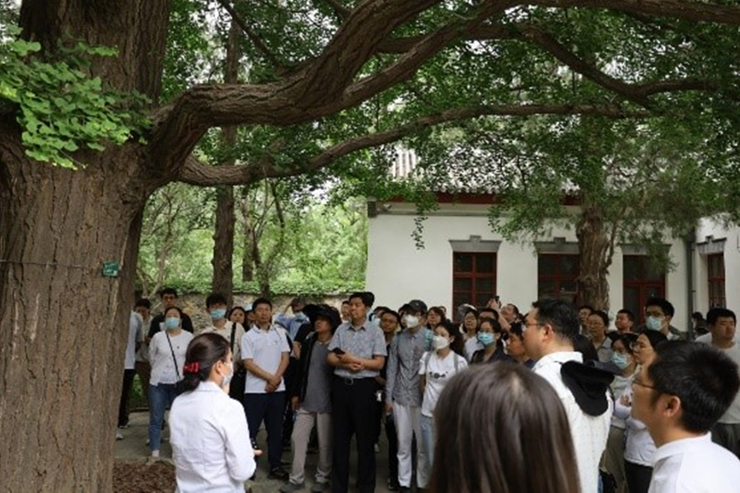 进入双清别墅,碧波涟漪,翠叶环绕,六角红亭矗立院中。亭中布置根据警卫长回忆录还原,毛泽东同志曾在此处阅读南京解放的报道,一旁的白色建筑为毛泽东同志在香山的主要居所,这里曾诞生了《人民民主专政》等著名论著与《七律·解放军占领南京》等千古绝唱。随后,师生参观了来青轩,这里曾是刘少奇、朱德、周恩来与任弼时同志的办公场所与居住地。