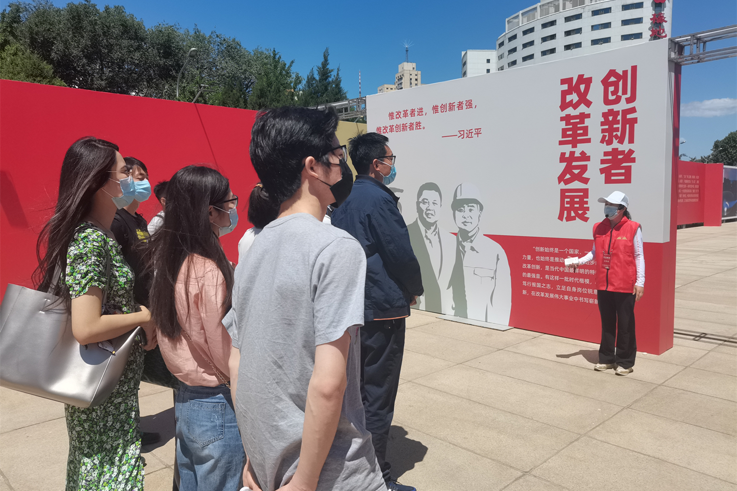 接下来,徐伟钦老师、寇明雯老师带领毕业生党员前往中华世纪坛参观了《时代楷模——致敬中国共产党百年华诞》。