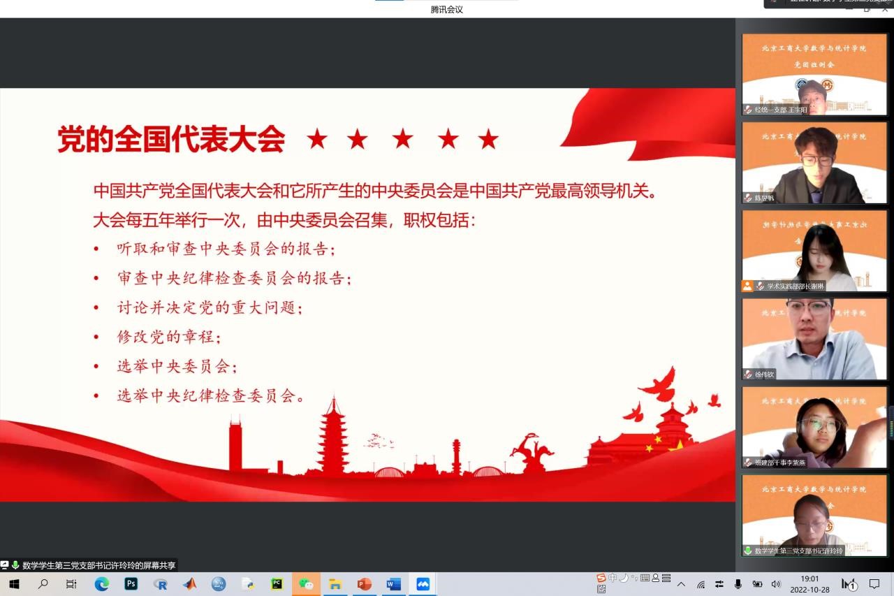 大会第一项,由数学员工第三支部徐玲玲发言,和大家共同学习党的第二十次全国代表大会。具体介绍了党的二十大基本情况和二十大日程,全体人员认真聆听。