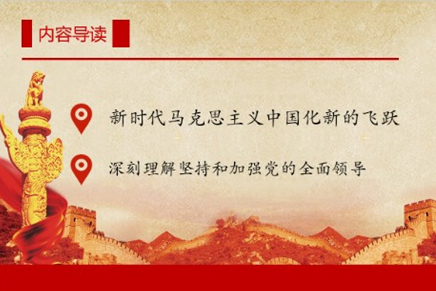 丛薪蓉老师领学了“习近平新时代中国特色社会主义思想实现了马克思主义中国化时代化新的飞跃”和“坚持和加强党的全面领导”两个部分:习近平新时代中国特色社会主义思想是当代中国马克思主义、二十一世纪马克思主义,是中华文化和中国精神的时代精华,实现了马克思主义中国化新的飞跃,为新时代党和国家事业发展提供了根本遵循,是我们党必须长期坚持的指导思想。中国共产党的领导是中国特色社会主义最本质的特征,是中国特色社会主义制度的最大优势。坚持党对一切工作的领导,必须坚决维护习近平总书记党中央的核心、全党的核心地位,不断完善党的全面领导的制度,提高党把方向、谋大局、定政策、促改革的能力和定力。