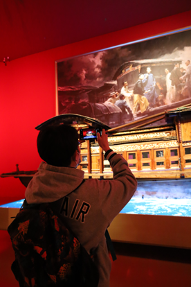 气势磅礴的长城主题漆画、一大会址复原场景、遵义会议复原景观、党的七大投票箱、开国大典影像......珍贵的文物实物、详实的档案资料、生动的图片视频、逼真的复原景观,无一不震撼着我们。