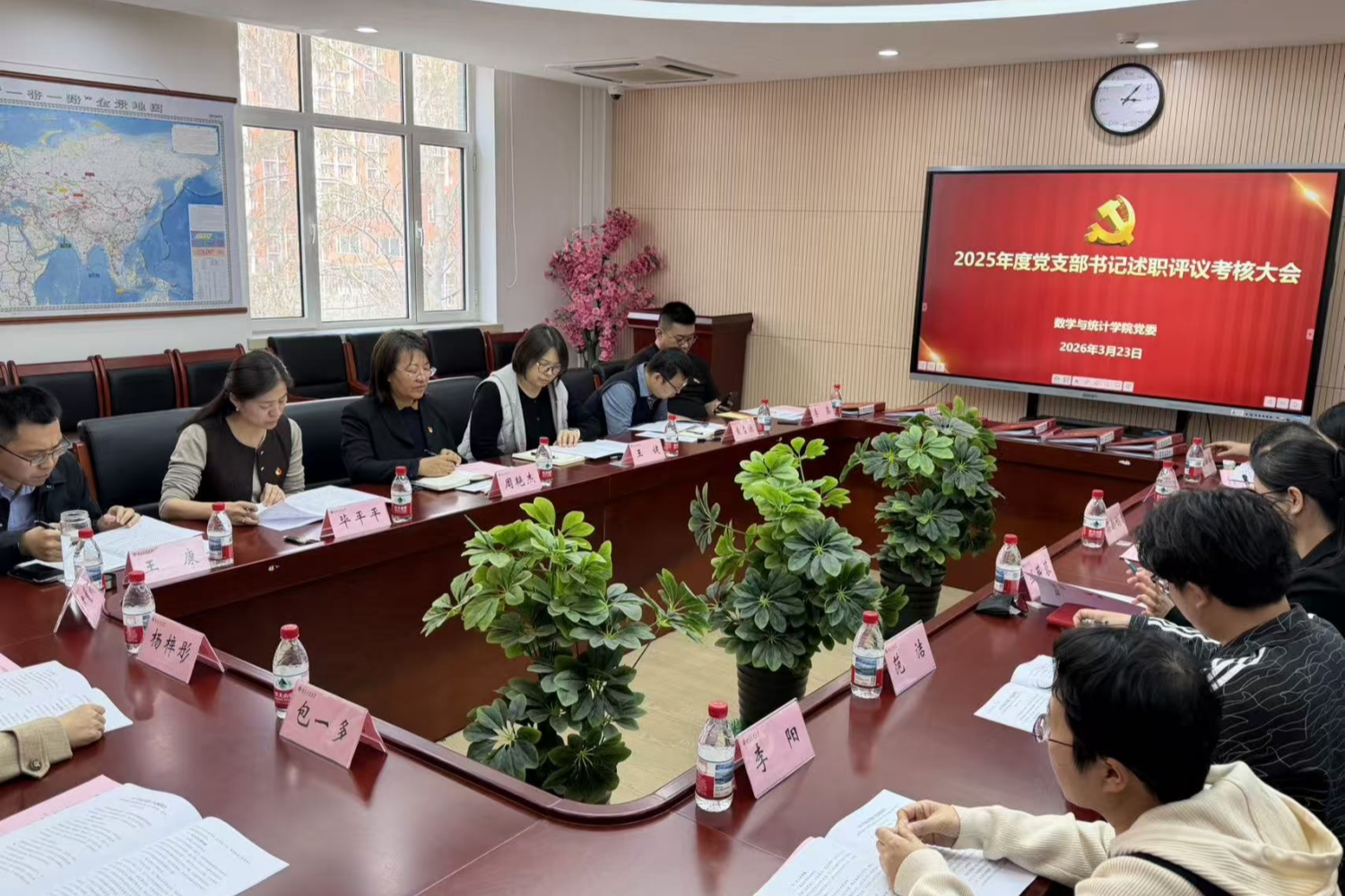会前,各支部认真完善支部手册,精心准备述职报告。会上,4名任职满半年的支部书记依次现场述职,围绕支部基本情况、制度落实、党员发展及党建活动等方面工作进行汇报,总结工作成效,查摆问题不足,提出下一步工作思路与改进举措,其余6名支部书记提交书面述职报告,接受评议考核。