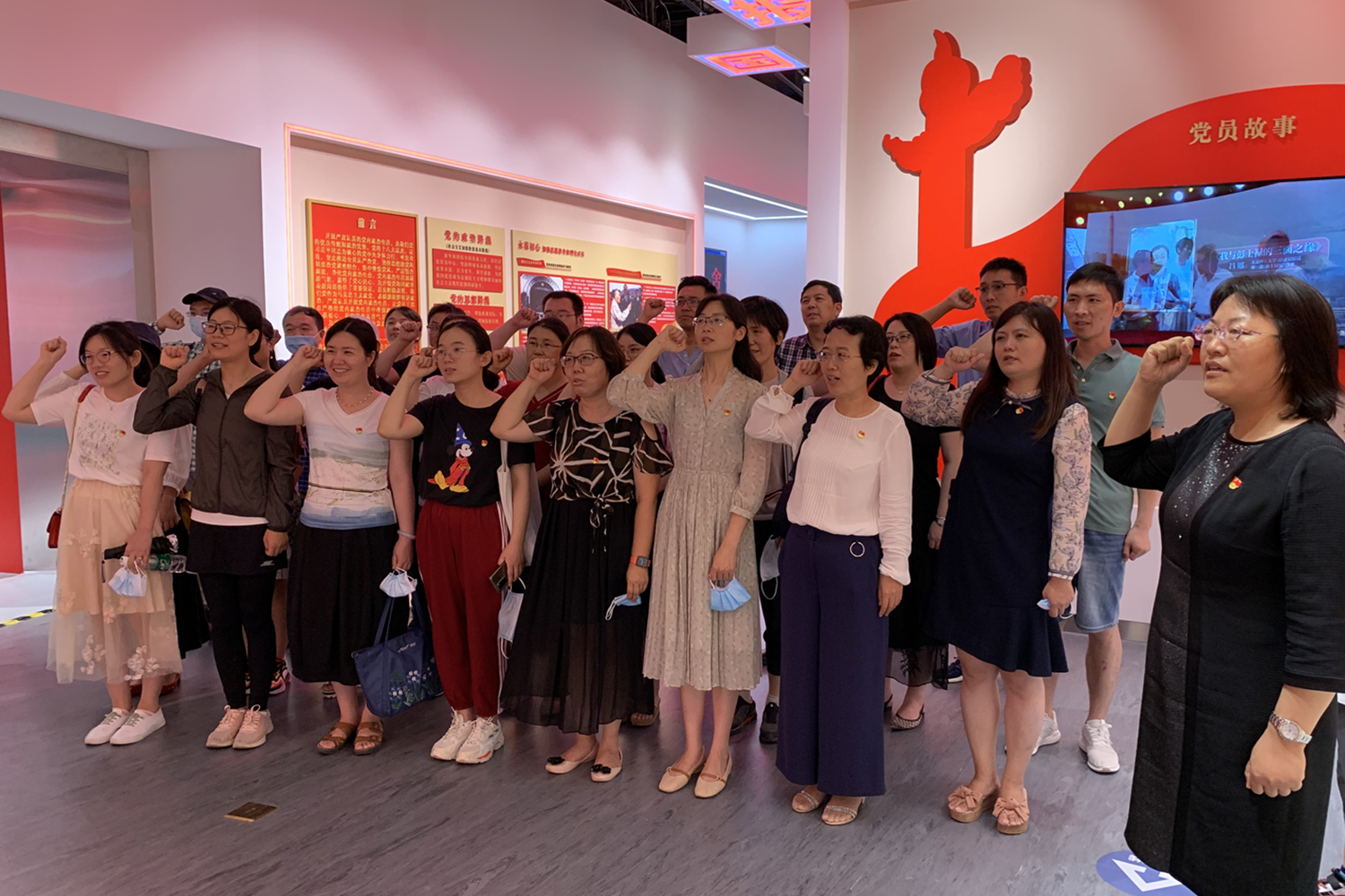 参观结束,在公司党委书记周艳杰的带领下,全体党员举起右拳,向着党旗重温入党誓词,铮铮誓言表达对党的忠诚和敬仰。