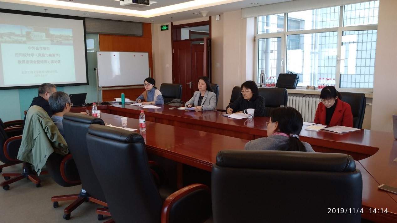 11月4日,中外合作项目应用统计学(风险与精算学)教师座谈会暨培养方案论证会在yl23455永利集团综合楼会议室1116举行。教务处处长曹显兵教授,爱尔兰科克大学黄健研究员,yl23455永利经理刘艳楠教授,副经理周艳杰教授,以及该专业的任课教师出席此次座谈。