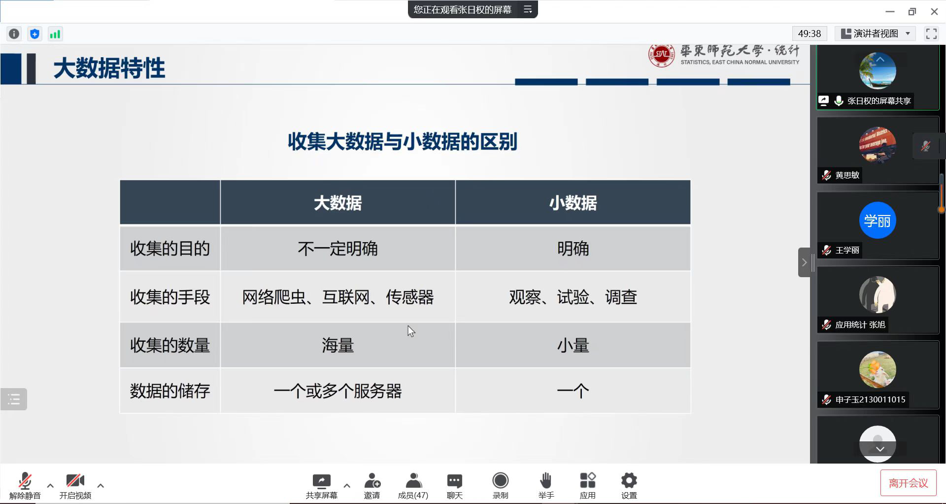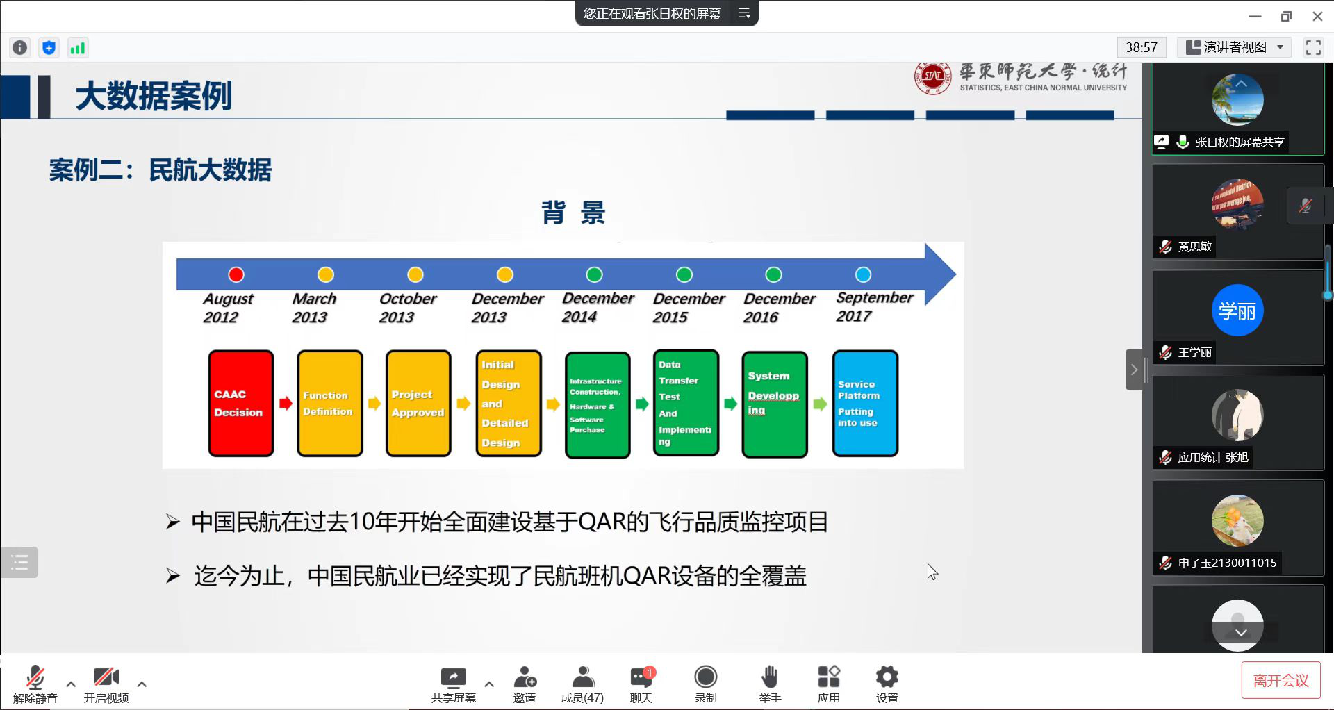 5月13日下午,应yl23455永利的邀请,华东师范大学统计公司经理、教授、博士生导师张日权作主题为“ 统计学与大数据 ”的线上学术报告,报告由公司耿直教授主持,刘艳楠经理等四十多位师生在线参加了学术报告会。