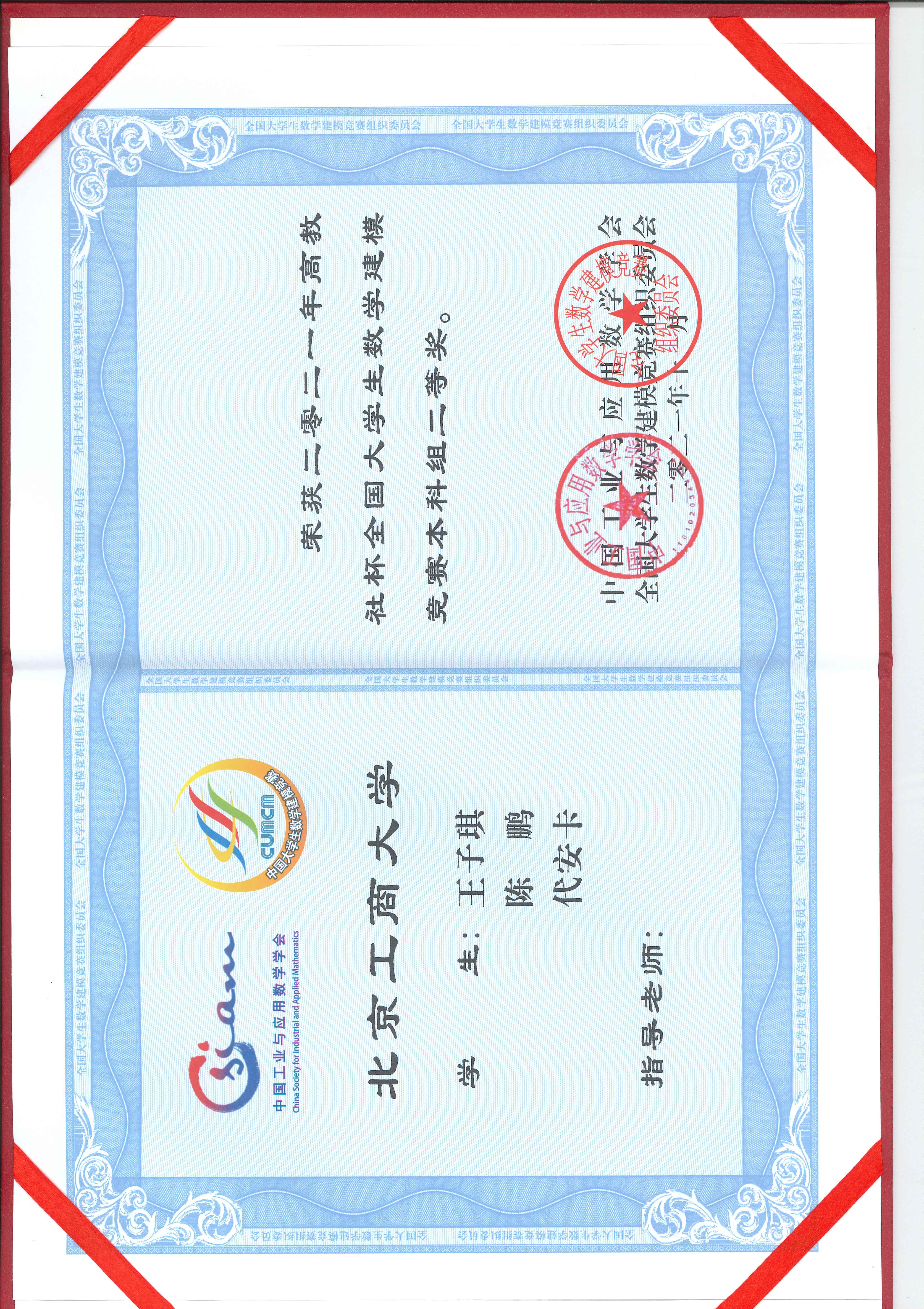 同时,在刚刚公布的2021年高教社杯全国老员工数学建模竞赛暨北京市老员工数学建模与计算机应用竞赛获奖名单中,公司学子经过4天的紧张奋战,获全国二等奖1项、北京市一等奖1项、二等奖1项。