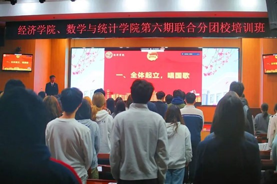 最后,全体师生起立共唱《光荣啊,中国共青团》,激昂的旋律回荡在报告厅内,开班典礼圆满落幕。