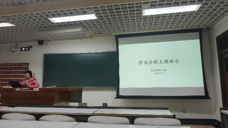 数学类202班、经统20班会上,每名员工自查绩点并进行学业分析,成绩较好员工分享学习方法,班主任鼓励同学间进行互帮互助,为学习困难员工安排了小教员进行辅导。