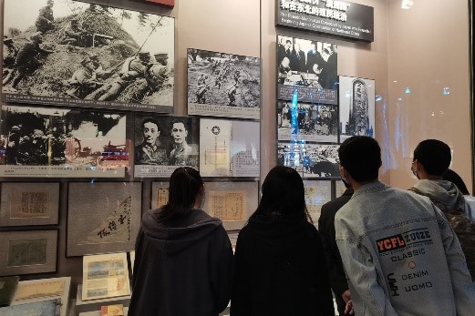 跟随自助语言讲解,同学们走进纪念馆大厅,依次参观了中国局部抗战、全民族抗战、中流砥柱、日军暴行、东方主战场、得道多助、伟大胜利、铭记历史8个部分。大量的史料、丰富的实物、生动的影像全面展示了在中国共产党的指引下,中华民族众志成城奋勇抗战最终取得胜利的过程,同学们仿佛听到了抗战军民为了保家卫国发出的震耳欲聋的大吼,仿佛看到了革命先辈们顽强战斗不怕牺牲的场面,对抗日战争历史和抗战精神有了更加深刻的了解。