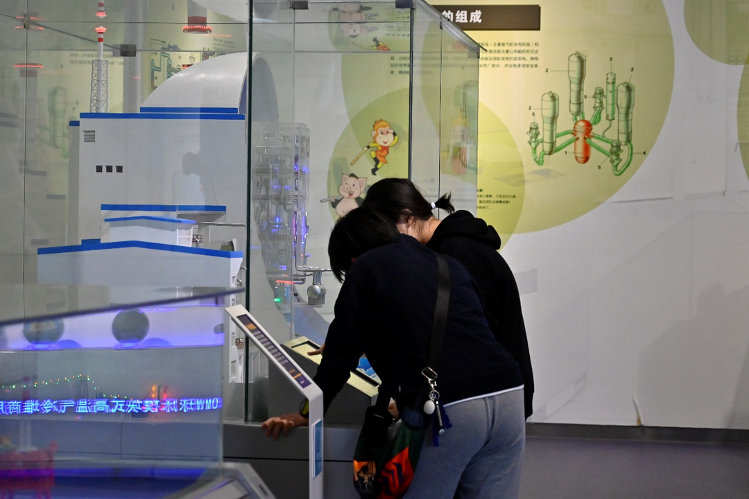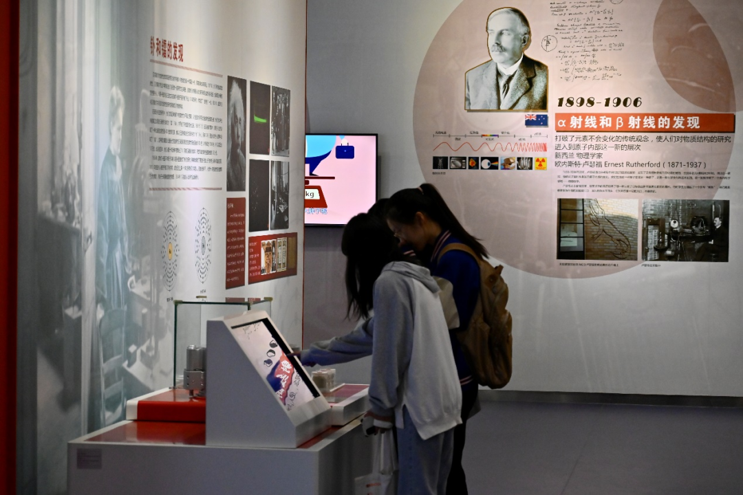 乘电梯行至二楼,同学们来到核工业、核科技原料的提取和加工参观区。从相关矿石的采集到中间过程的提纯加工再到最后原料的使用,展馆均采用模型向大家清晰地展现了核工业相关原料的加工流程,馆内的智能设备也让同学们身临其境地体验了核工业的工作方式。