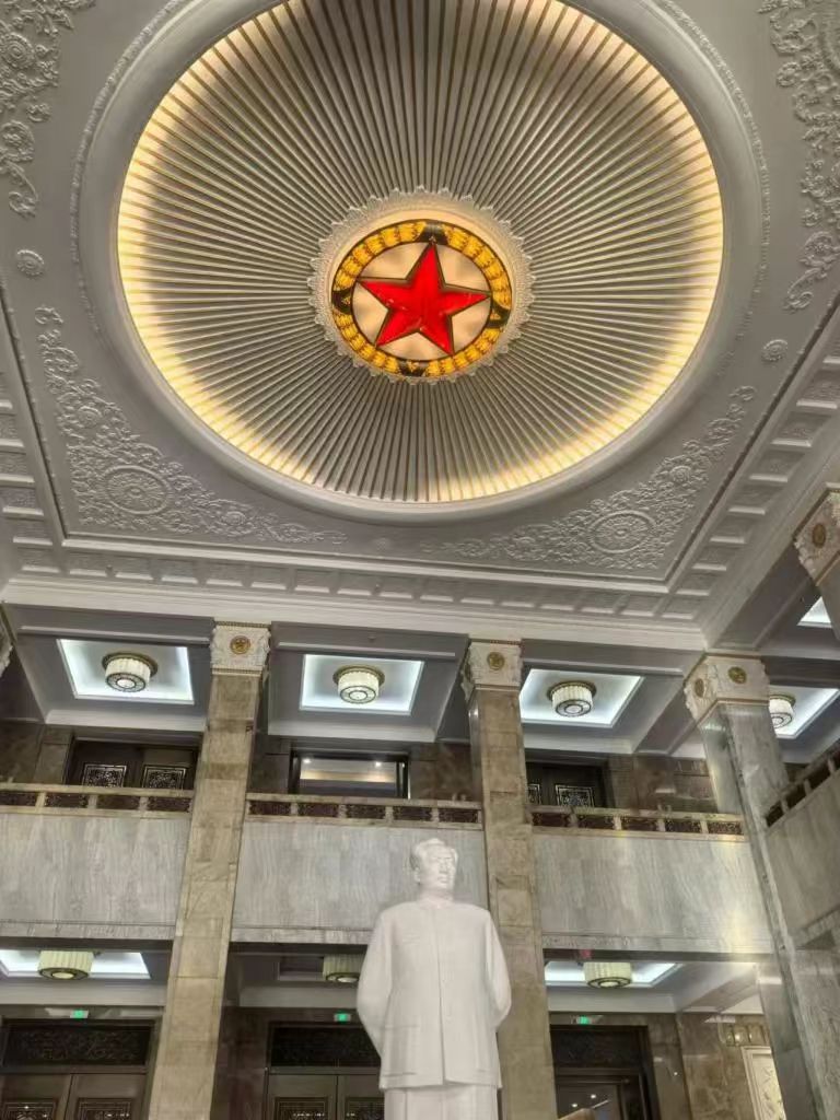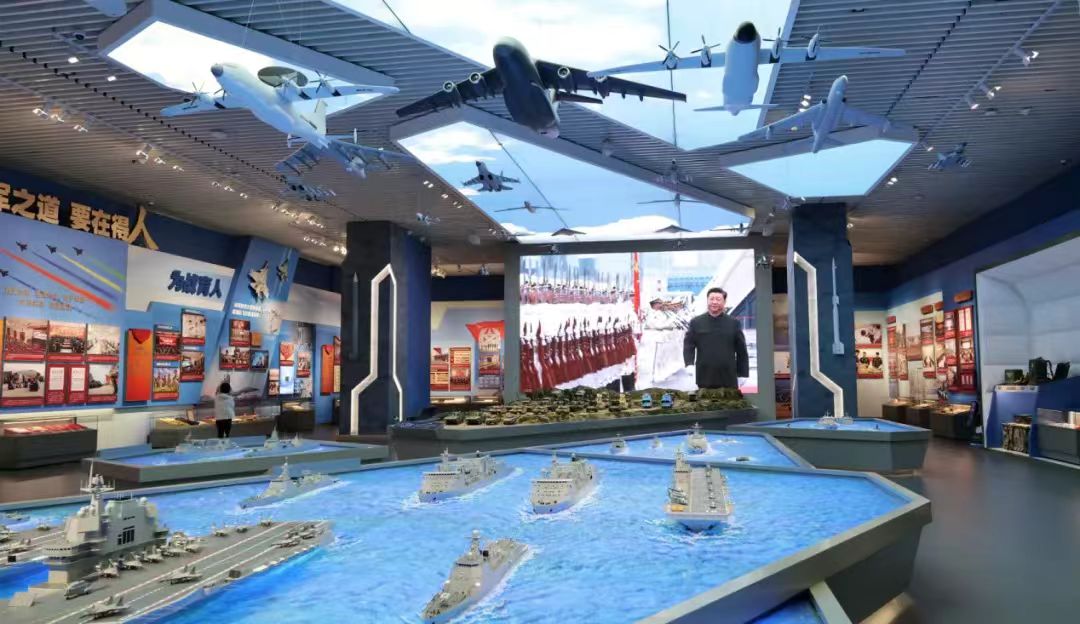 接下来,同学们前往参观了“领航强军向复兴”新时代国防和军队建设成就展。通过8个单元展区,1400余件文物实物、630余张照片、近百套武器装备模型,生动展示了新时代国防和军队建设的历程和成就。展览内容广泛,从政治建设到科技创新,再到实战准备等多个维度,全面展现了中国军队现代化进程的全貌。这些展览使大家看到了人民军队忠诚维护核心、矢志奋斗强军的昂扬风貌,激励着同学们为民族复兴贡献力量。