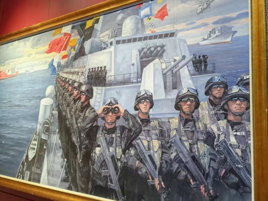 最后同学们参观了红色记忆——馆藏革命军事艺术作品陈列区,主要以油画、雕塑和国画等形式展示革命题材。这些作品不仅是艺术的展现,也是历史的见证,深刻反映了新中国波澜壮阔的革命历史和军事成就。参观过程中,同学们被我党艰苦卓绝的奋斗史和军人的视死如归的革命精神深深感动,大家深刻认识到“强国必须强军,军强才能国安”。