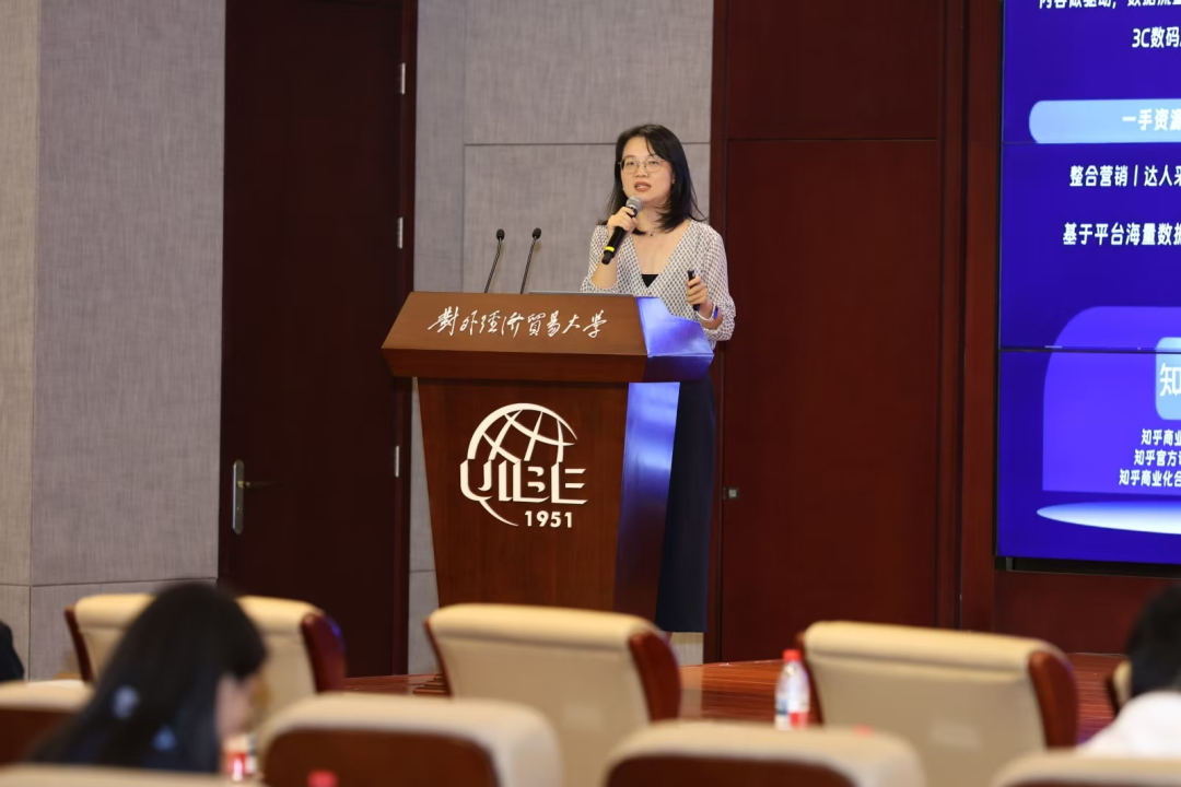 北京知外文化传播有限公司人事负责人李凡做了题为《从校园到职场 迈向市场营销行业的第一步》主题报告,分享了企业育人的发展之路,并期望同各高校携手共同探索“产、学、研”融合的新路径。