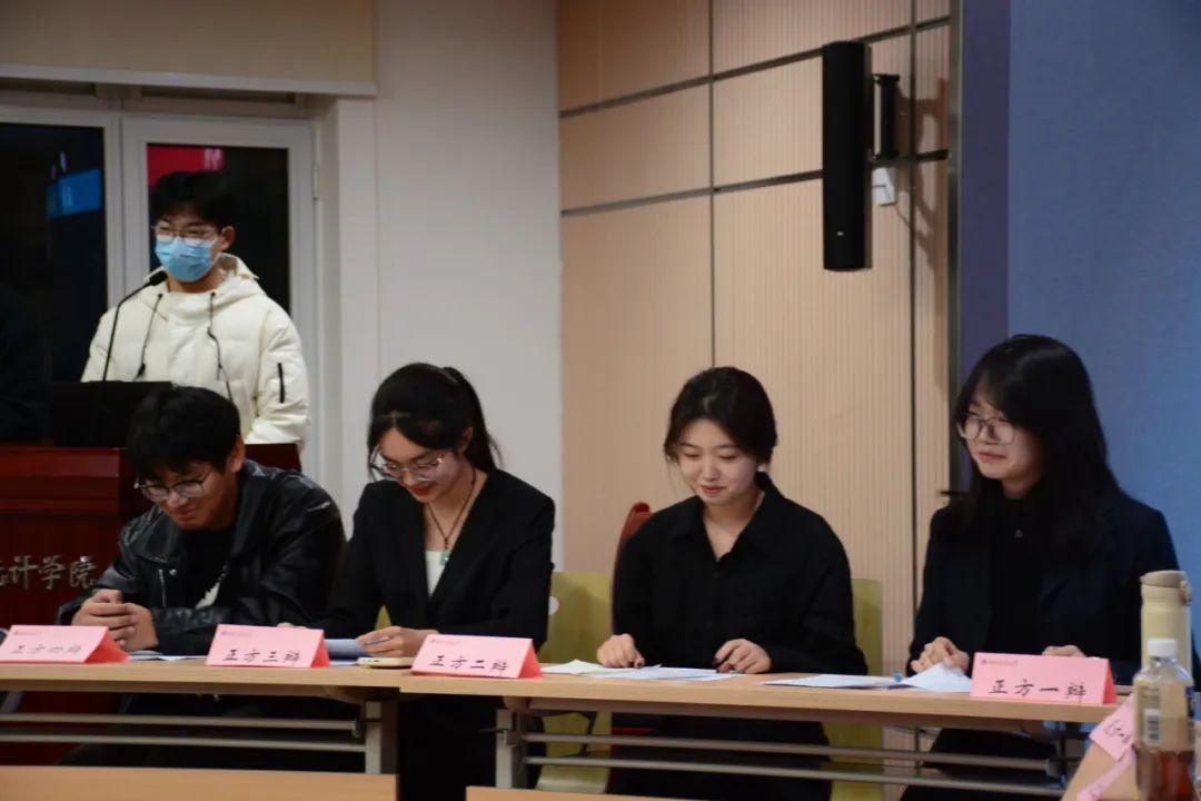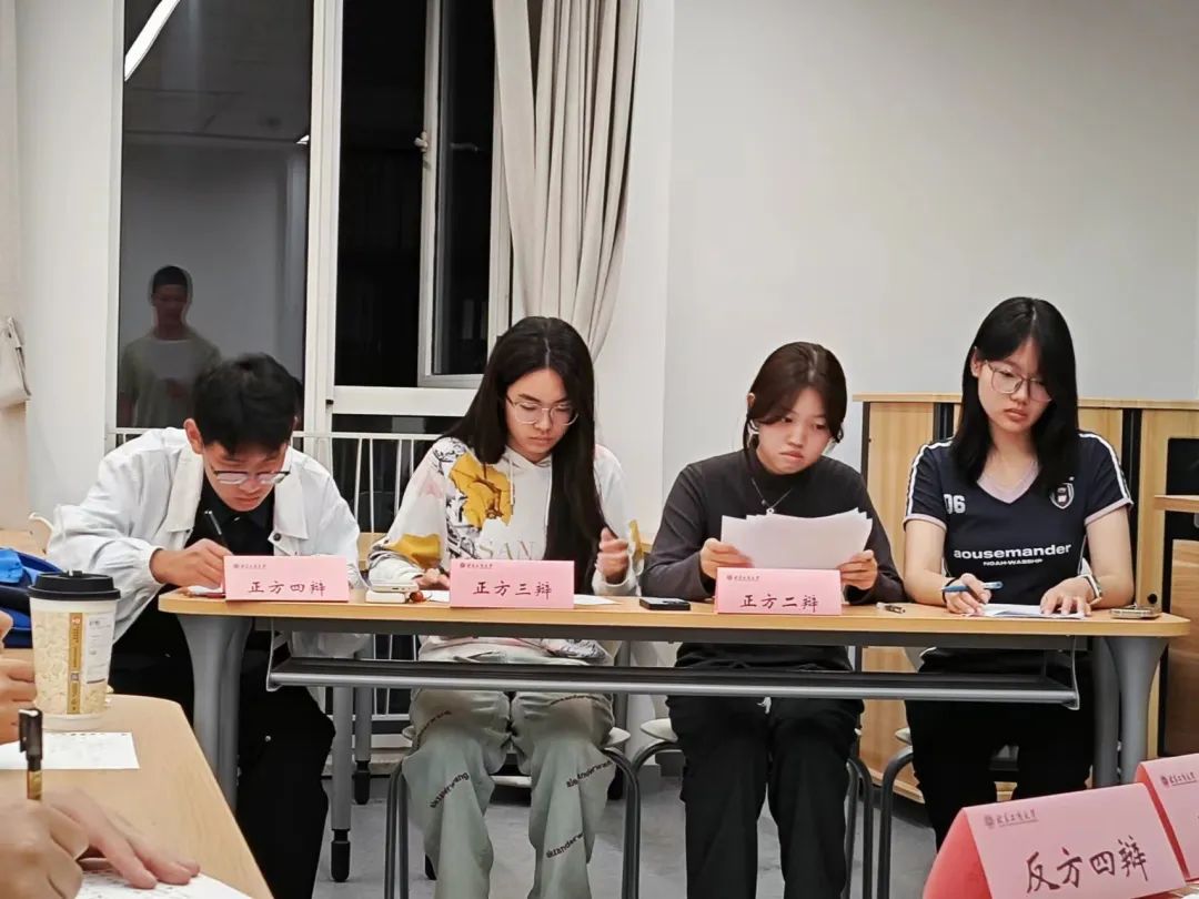 yl23455永利集团校辩论队队长韩晴,经济公司辩论队队长刘诗扬,数统公司辩论队20级队长张子涵,22级队长郑茜文,23级队长郑一鸣担任本场比赛评委。