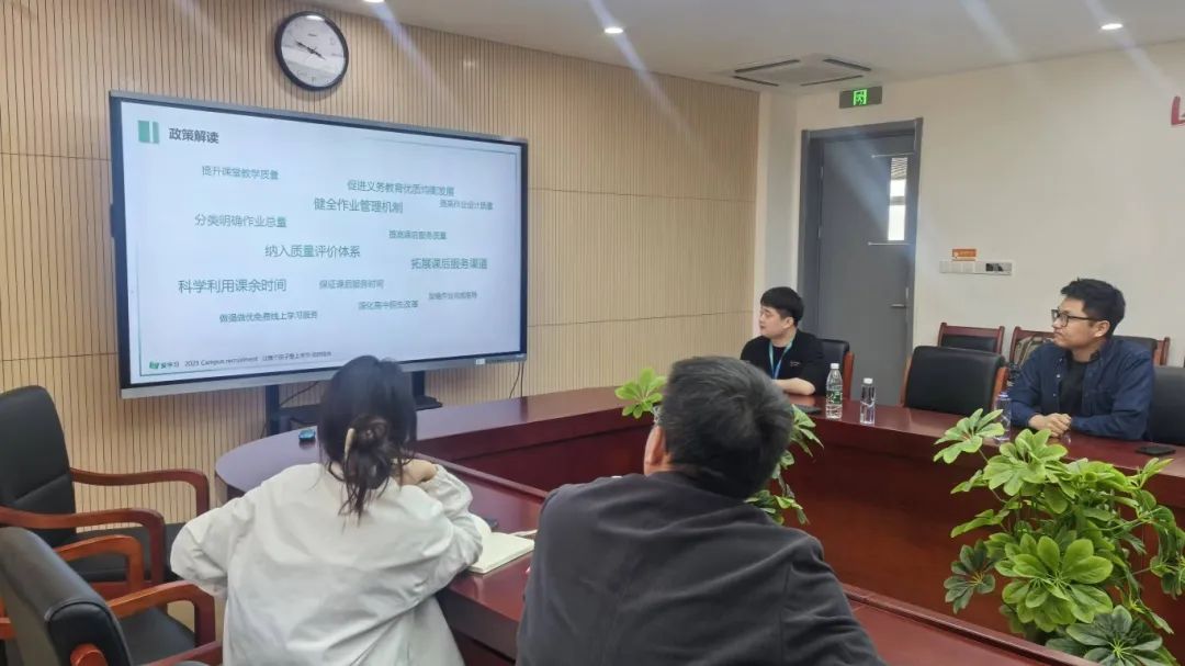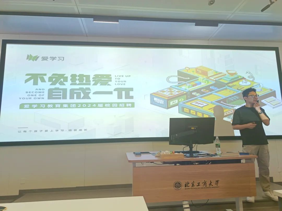 讲座结束,公司召开院企交流座谈会暨爱学习教育集团专场宣讲会,双方就人才培养、实习实践等方面进行深入交流,赵瑸琦代表企业,现场发布线上教学、教研开发、运营管理等实习岗位。他强调,爱学习教育集团始终以“让每个孩子爱上学习” 为使命,职业选择本质是价值选择,要在热爱与擅长之间找到平衡点。他详细解读了“思考力、沟通力、教育热情” 三位一体的人才评价体系,并寄语青年学子,鼓励同学们主动投身行业实践,在教育变革中实现个人价值与社会价值的统一。