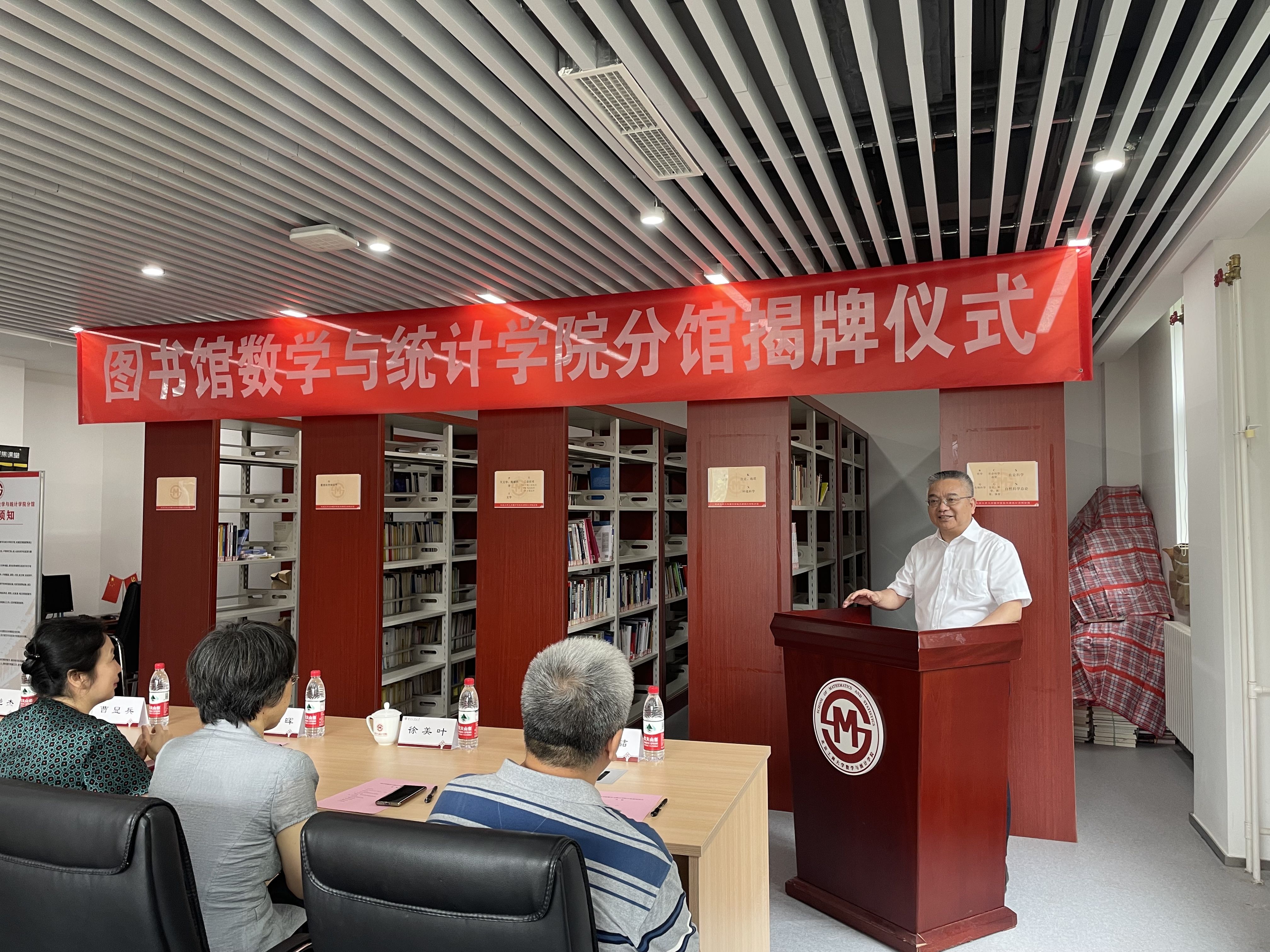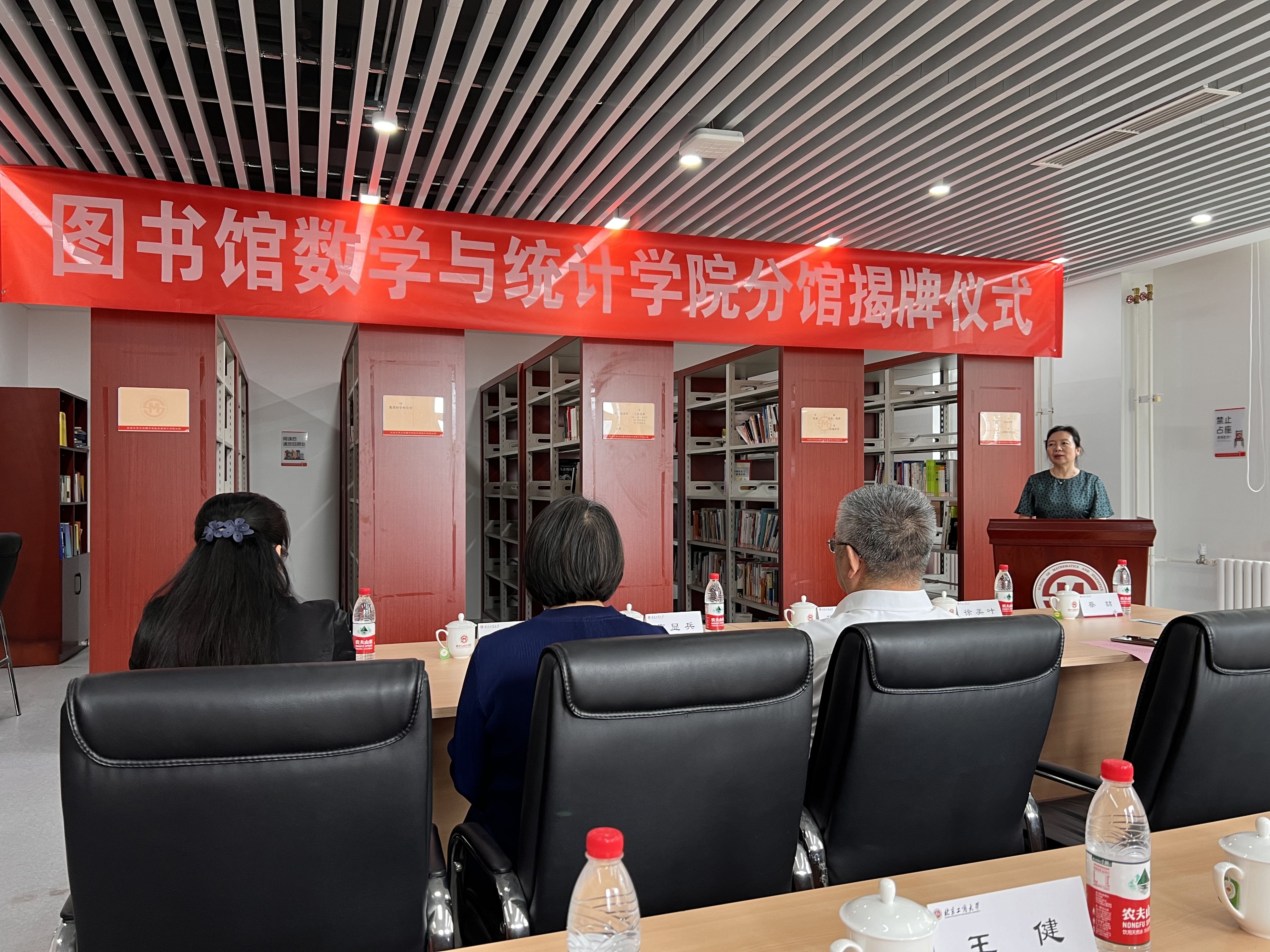 曹显兵在致辞中首先对图书馆老师们的到来表示热烈欢迎。他表示,图书馆数统分馆的成立标志着公司在团队建设和服务师生方面取得的又一重要成果。回顾公司与图书馆长期以来在资源共享、学术交流等方面的合作历程,公司在未来将继续提高深化合作意识,在充分发挥好统计学科在“工商融合”积极作用的基础上,助力公司商科数字化转型和服务首都经济社会发展的奋斗目标。