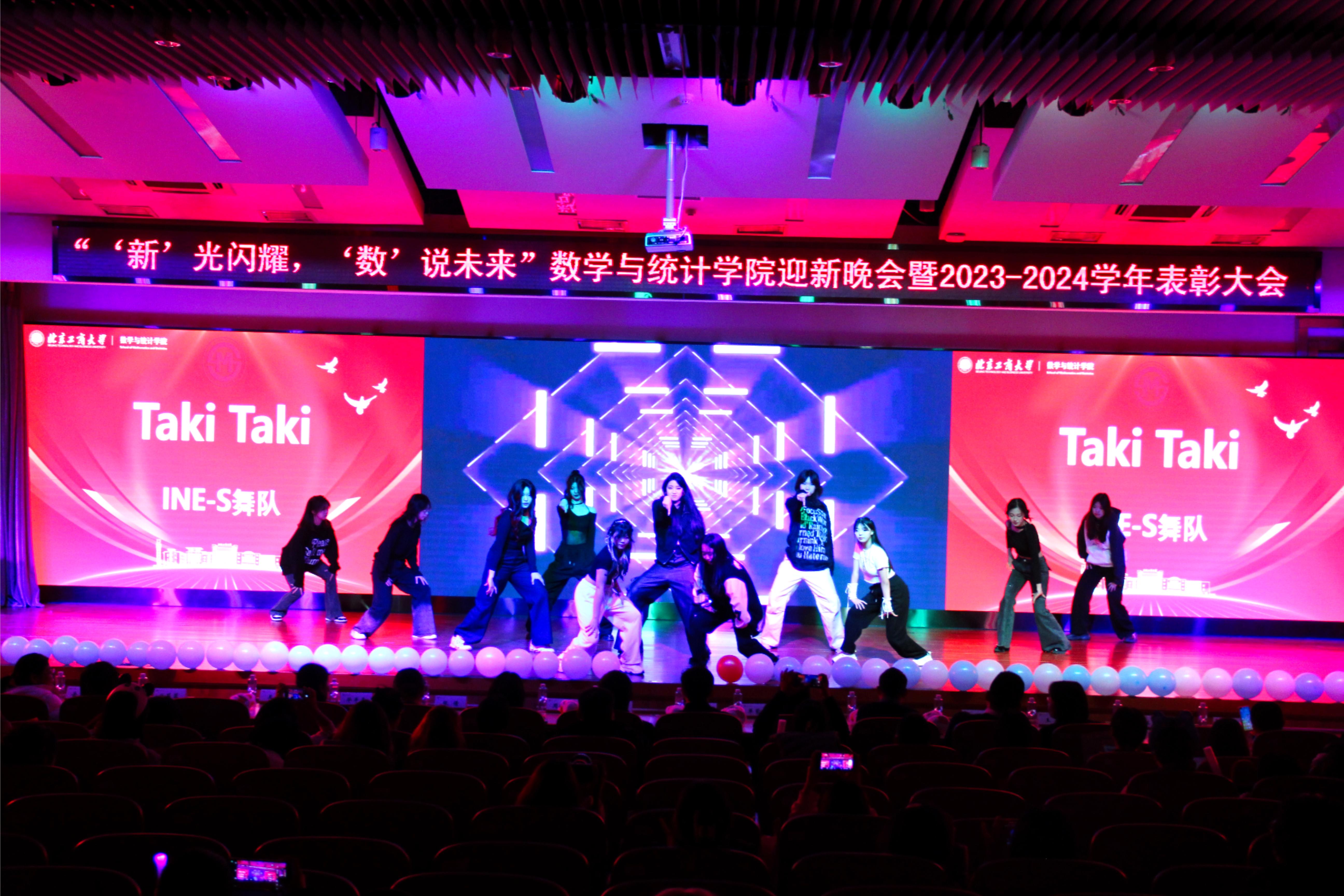 首先,由大数23郝雪妍、李佳璐、经统23魏佳星、应统23陈欣羽、应统中外24李沛芷、于一涵、应统24谭昕雨、沙元欣、大数24张语恬、崔智涵、邹子蕊闪亮登场,她们为现场师生带来了节奏感超强的舞蹈《Taki Taki》,大会在热情洋溢的开场舞蹈中拉开帷幕,舞者们无比激情的表演瞬间点燃了现场气氛。