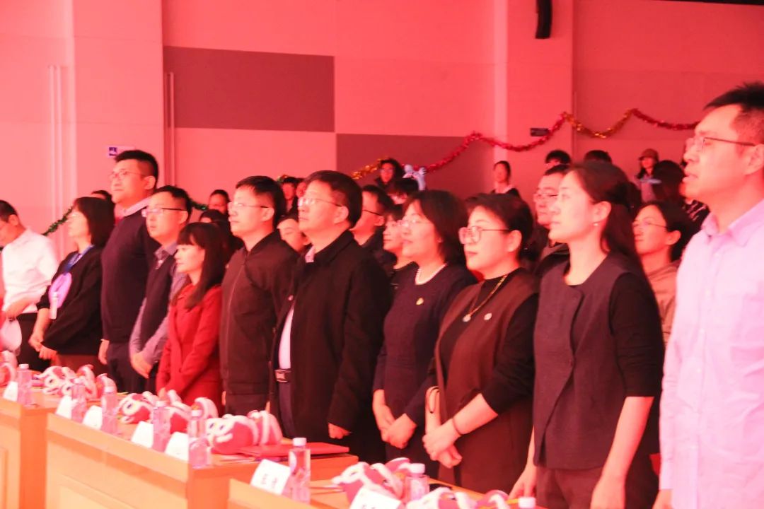 紧接着,全体起立,奏唱国歌,庄严肃穆的旋律回荡在会场,彰显着公司师生对祖国的深深敬意与热爱。