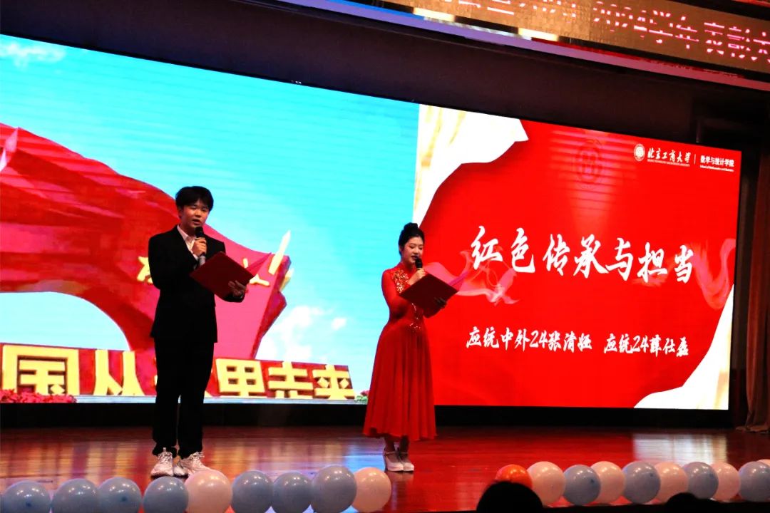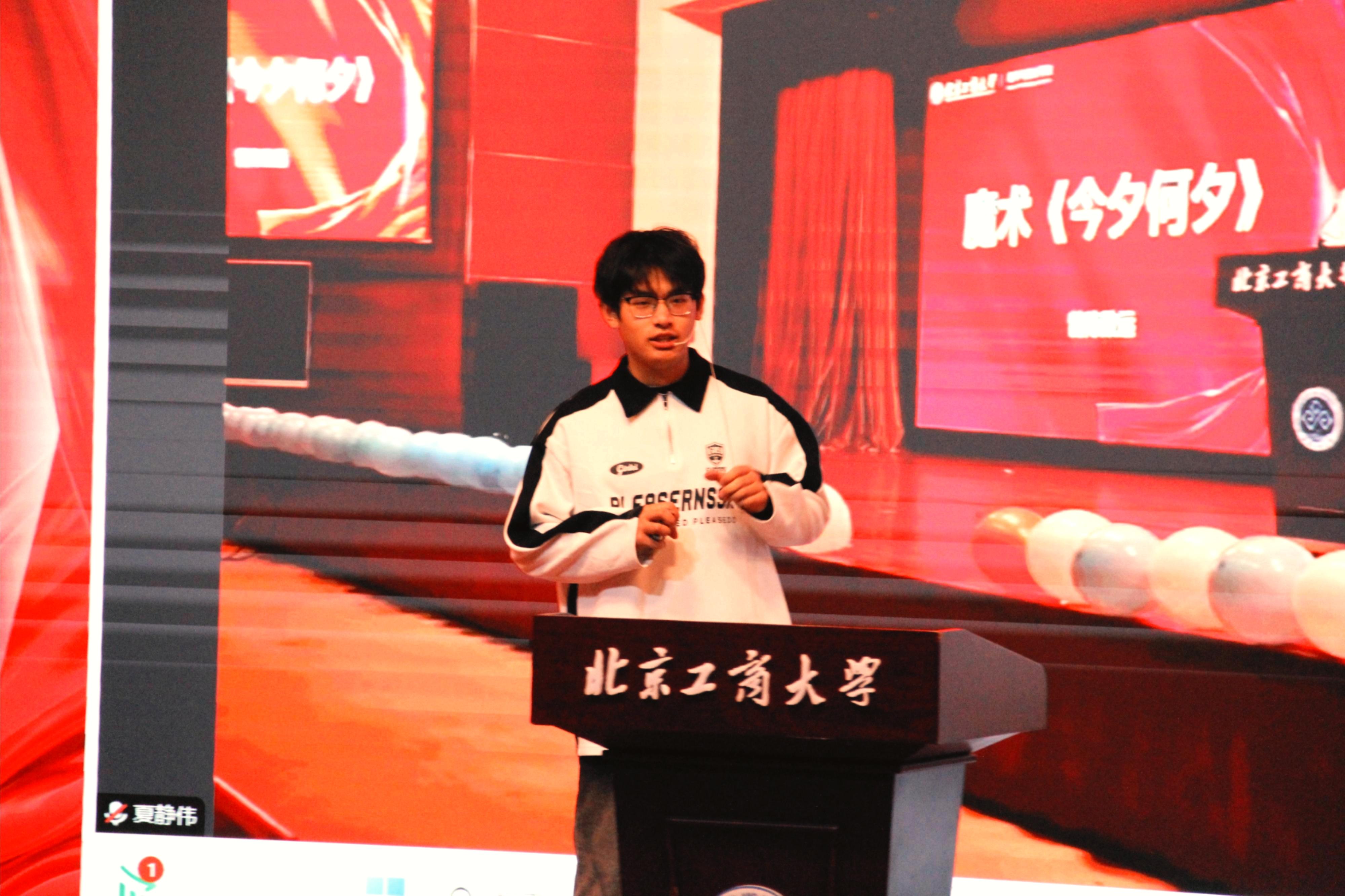 应统24薛仕磊与应统中外24张清桠同学携手带来朗诵《红色传承与担当》。他们用铿锵有力、饱含深情的语调,追溯往昔峥嵘岁月,将先辈们的英勇事迹与崇高精神娓娓道来,让红色基因在每一句朗诵词中熠熠生辉,也让在场师生深刻感悟到传承与担当的厚重使命。
