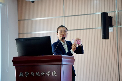 首先主讲人为同学们介绍了如何识别假币。识别假币的口诀为:一转二摸三透光。一转看两处:光彩光变数字和光变镂空开窗安全线;二摸摸正背面,在国徽,行名,毛泽东头像等处均有明显凹凸感;三透光:举起纸币在左边空白处会出现毛主席头像和完整的100标志。
