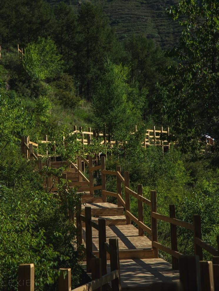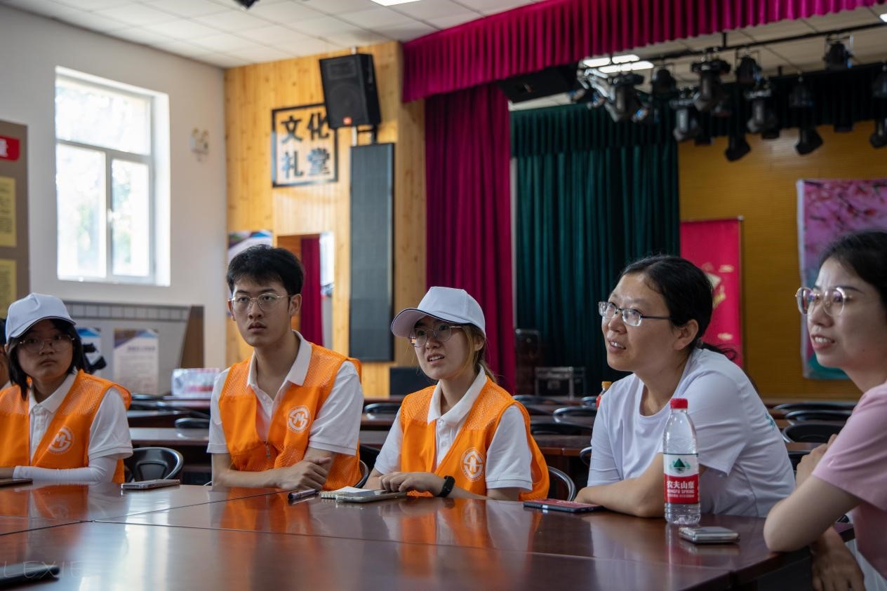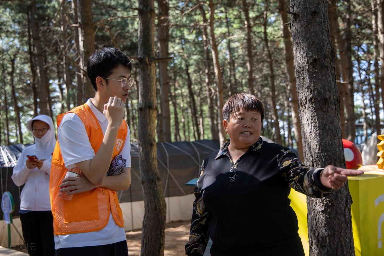 接着,实践团成员来到了北京海拔最高(约1200米)的酒店——森林乡居度假酒店。为带动更多村民增收致富,蒲洼乡东村依托优美的自然风光与高海拔气候,全力打造特色景区,修建起了21栋养生木屋,5500米山脊观光步道和3000米沟域探险健身步道,形成了木屋养生、山脊观光、田园采摘等功能于一体的绿色产业发展新模式。走进园区,就会被茂密的绿色森林包裹,气候舒爽、空气清新,所有设计都呈现出原生态气息,立身于观景阳台就能眺望层山叠嶂。酒店内还设有超大且类型丰富的户外游乐区、落叶松咖啡馆、森林剧场、环形慢步道等,是一个非常适合放空及放慢脚步享受惬意假期的地方。