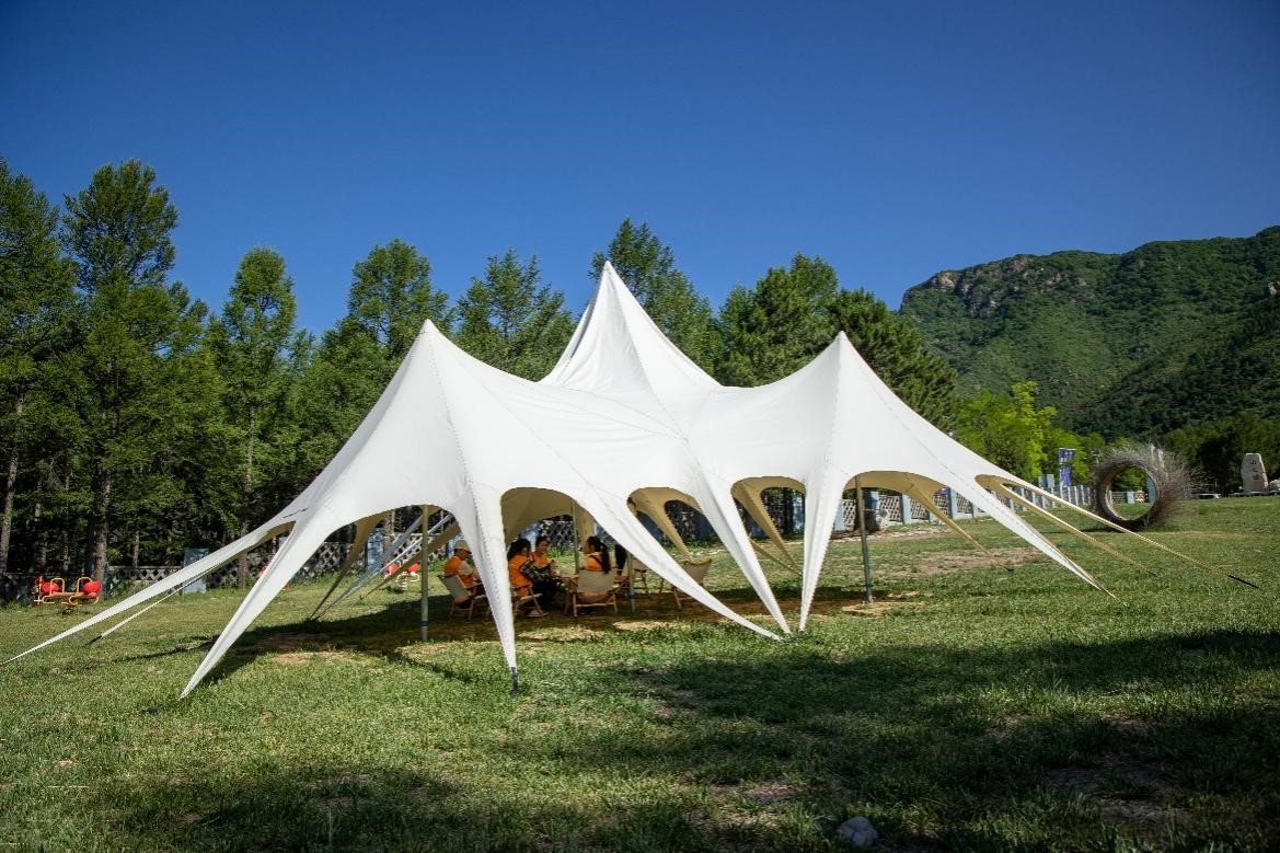 6月30日上午,在蒲洼东村老党员隗永俊同志和孙也同志的带领下,实践团成员们来到蒲洼乡东村花台景区。徒步景色优美的观光栈道,大家来到了后视镜星空营地,体验当地的休闲娱乐设施,给实践团成员留下了深刻的印象。后视镜星空营地位于蒲洼乡东村,海拔1200 米,是目前北京海拔最高的酒店式露营地,也是房山首家酒店式露营地。目前营区配有loft星空房、酒店帐篷、ATV 越野车、自助露营区,森林餐厅、磨菇采摘、登山步道区及儿童娱乐等项目。能够满足不同年龄、不同喜好、不同需求的游客。