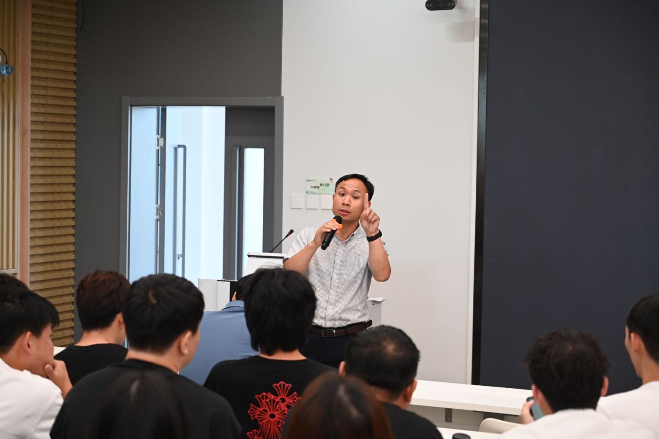 教学秘书刘解祥细致解读了公司产品方案,逐一阐释了课程设置、学分要求、实践环节等关键内容,并就选课流程、教务管理进行了详细说明,为同学们提供了实用的指导和建议,他指出,合理的选课规划对于研究生阶段的学术成长至关重要,希望同学们能够根据自己的兴趣和职业规划,制定出科学合理的选课计划。