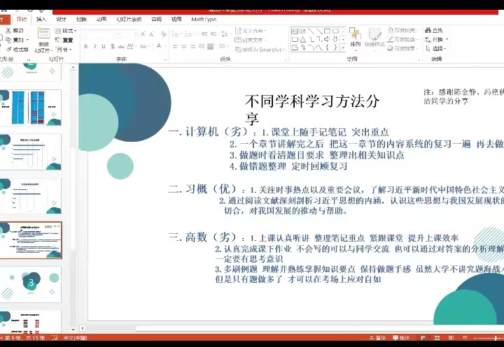 其次班长谢子菡同学以及学委胡芳蕊同学也对上学期的学习情况进行了总结。希望同学们能收收心,线下课也能学习的更加顺畅一点。这学期因为不可控的突发事件,打乱了持续的学习环境。但同学们仍然保持比较好的学习状态,按时上课、考试、完成作业。希望同学们可以利用开学前的这两周,调整好学习状态,更好的迎接下学期的线下课。