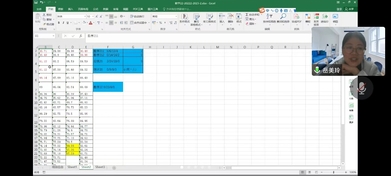 1. 分析高代数分最高最低分、平均分。这两科的学习班主任刘岩岩老师较为满意,同学们较为重视。