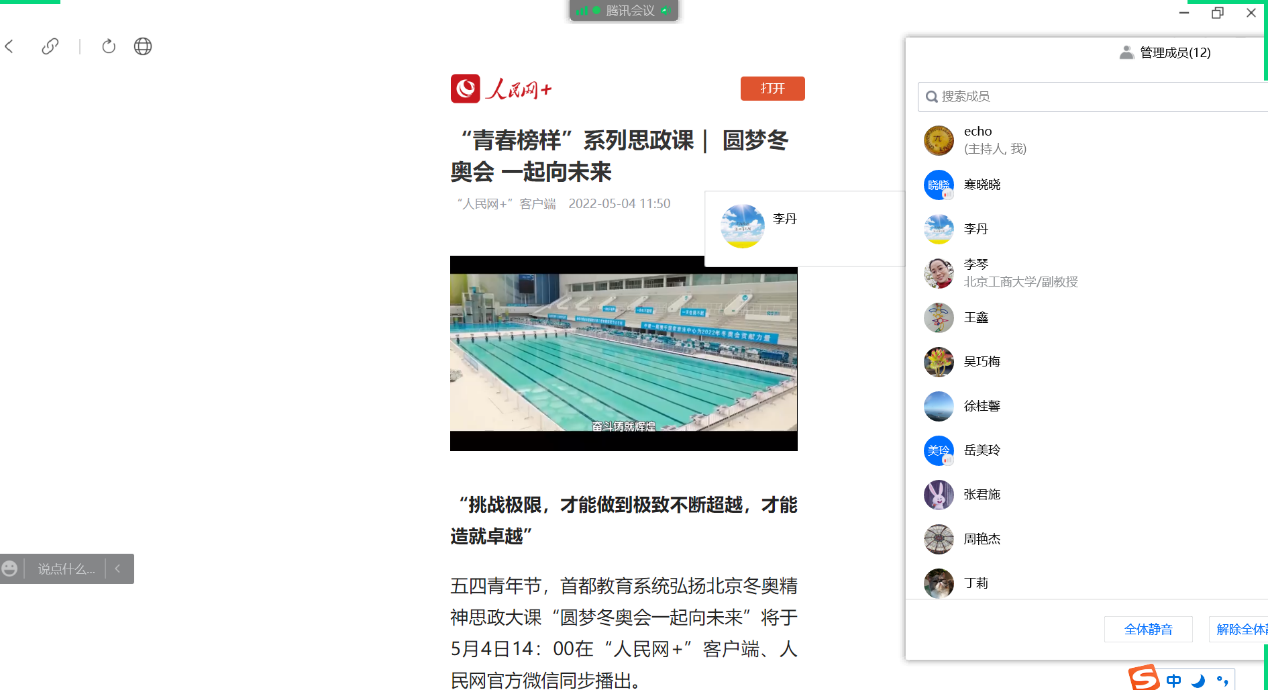 为深入学习贯彻习近平总书记在北京冬奥会、冬残奥会总结表彰大会上的重要讲话精神和在中国人民大学考察时的重要讲话精神,弘扬北京冬奥精神,5月4日下午14时,公司教工和2022年春季发展对象班学员分别组织观看了市委教育工委、市教委推出的“圆梦冬奥会,一起向未来”一首都教育系统弘扬北京冬奥精神“大思政课”。