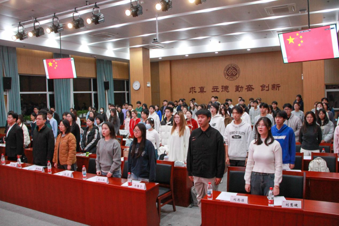 全体学员肃然起立,伴随激昂雄壮的《国歌》旋律奏响,大家齐声高唱,用嘹亮歌声凝聚青春信念,致敬家国使命。