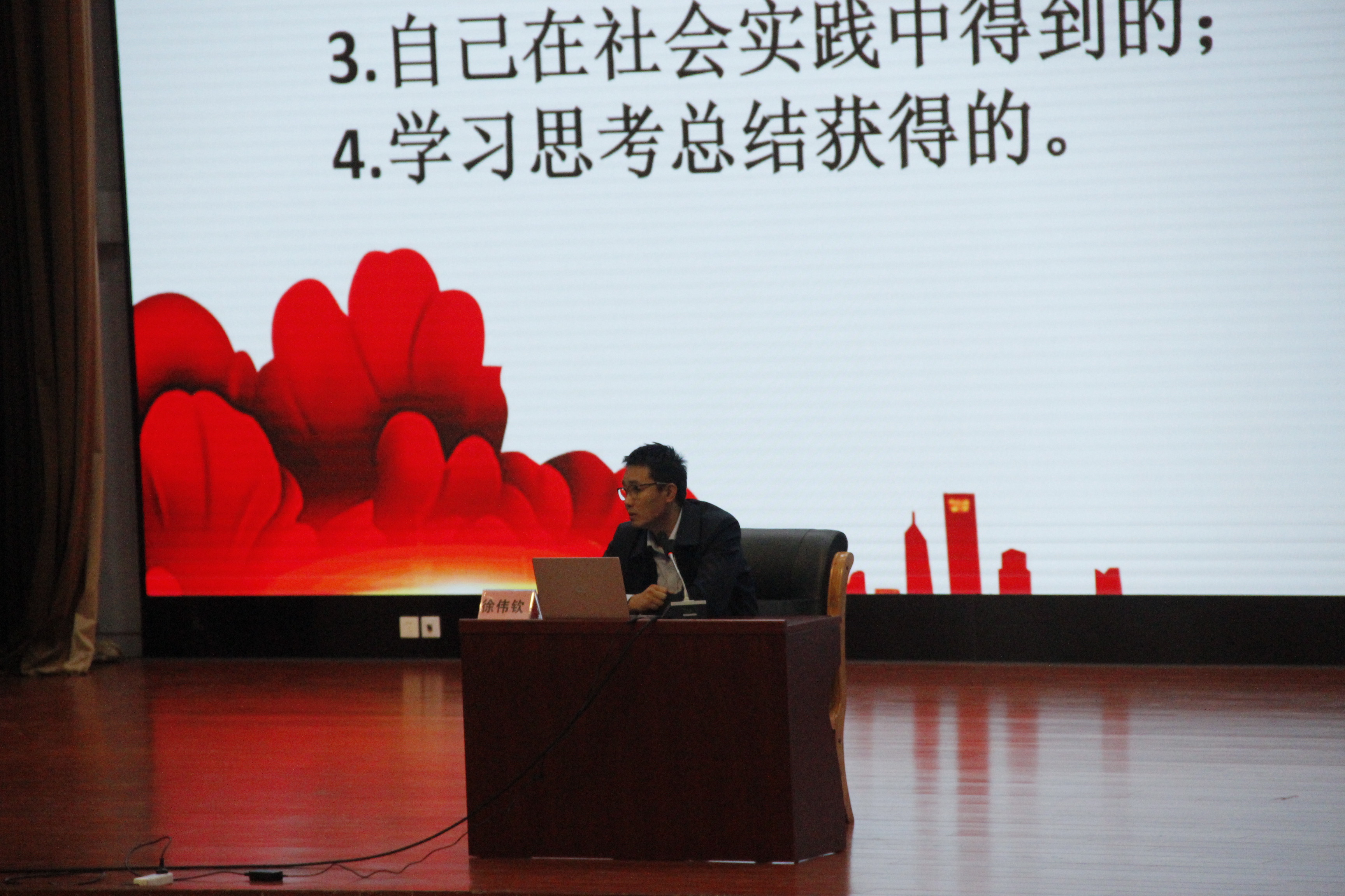 徐伟钦老师则讲述了《从历次党代会看中国共产党为什么行》。从马克思的伟大发现唯物史观与剩余价值说出发,讲述了中国共产党从一大到十九大的历史沿革与发展。从一个五十几人的政党发展到九千多万人的政党,成立了新中国并一步步实现中华民族的伟大复兴。中国共产党为什么行,因为中国共产党是一个永葆先进性的党,中国共产党是始终坚守初心和使命的党,中国共产党是久经考验的党,中国共产党是勇于自我革命的党,中国共产党是与时俱进的党。