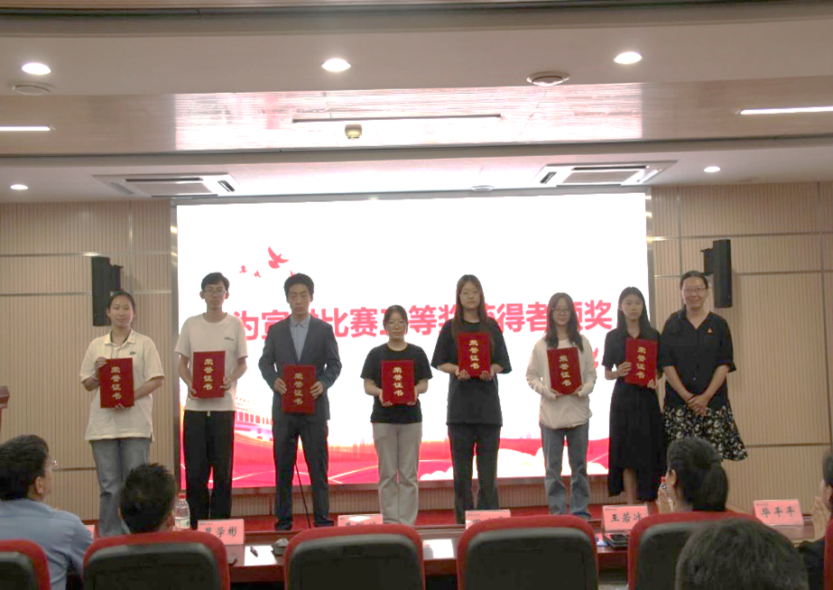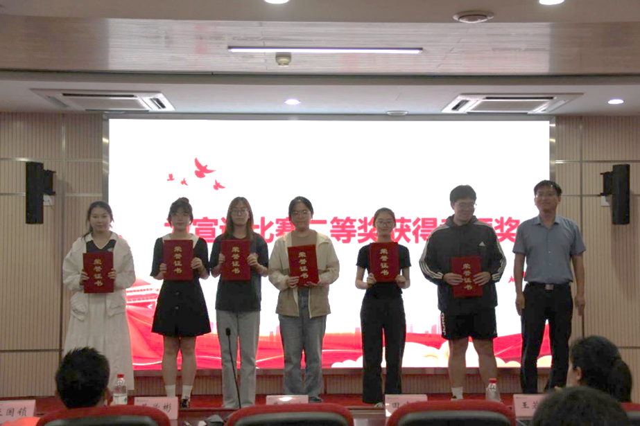 颁奖环节,葛学彬、张国锁、寇明雯和魏畅分别为荣获微宣讲比赛一、二、三等奖和优秀奖的员工颁奖。