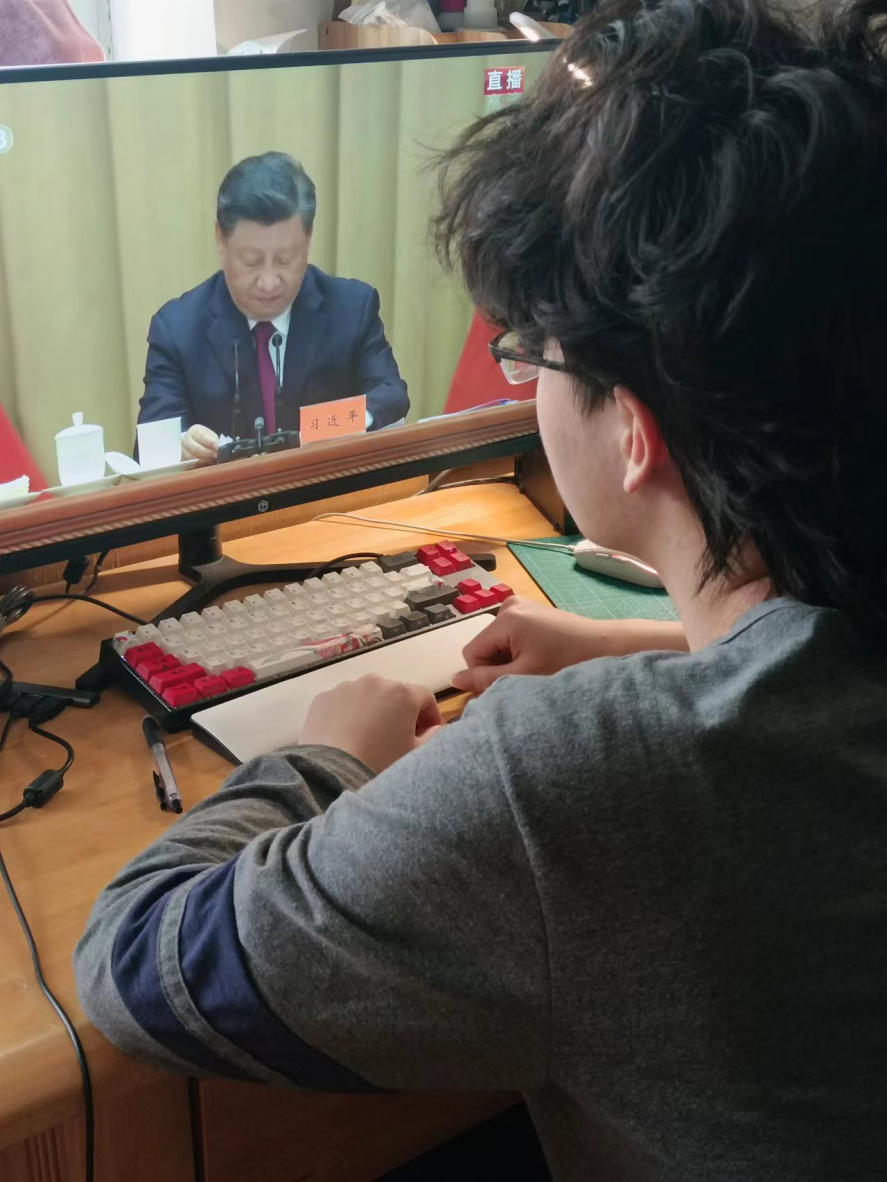 人力部部长鲁克涵提到,在社会主义建设新时期,我们青年人作为新长征的突击手,要主动作为,勇挑重担,唱响壮丽的青春之歌,我们青年人的心时刻紧紧和党连接在一起。如今全国很多地区正值对抗疫情的关键时期,作为青年人的我们,老员工的我们,更应该全力配合,做好疫情防控,居家减少出户等相关措施。在线上教学时,更应该认真听讲,好好学习,提升自己的居家自学能力,自律能力,才能不负祖国对我们青年人的期盼,将来为祖国新发展贡献属于自己的一份力量。