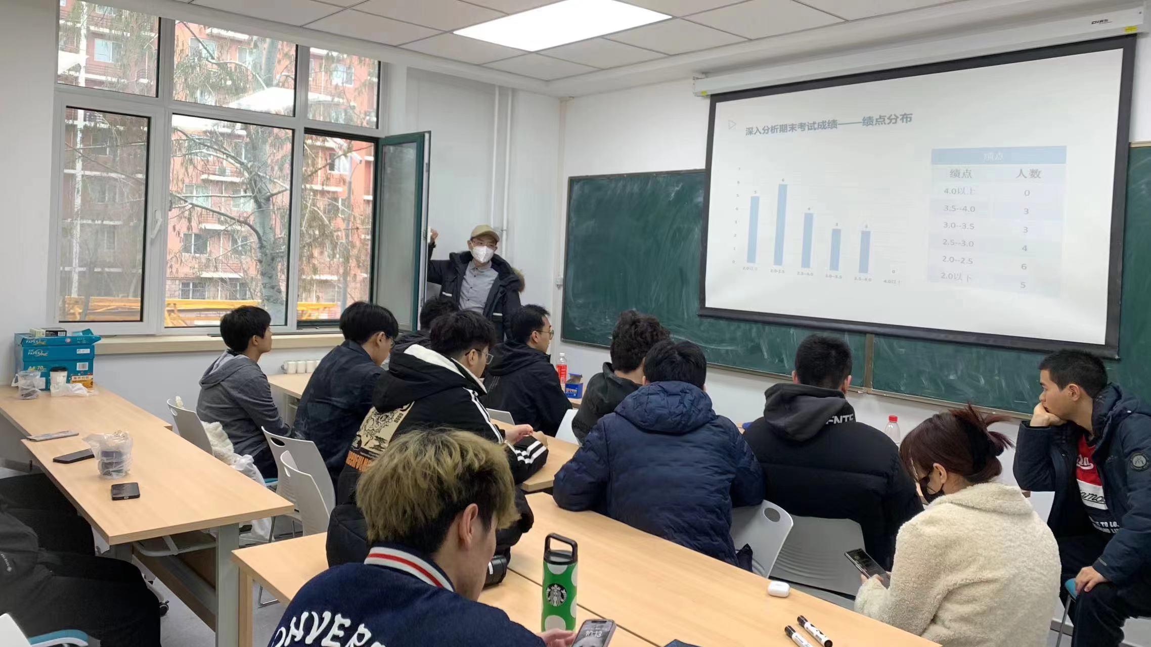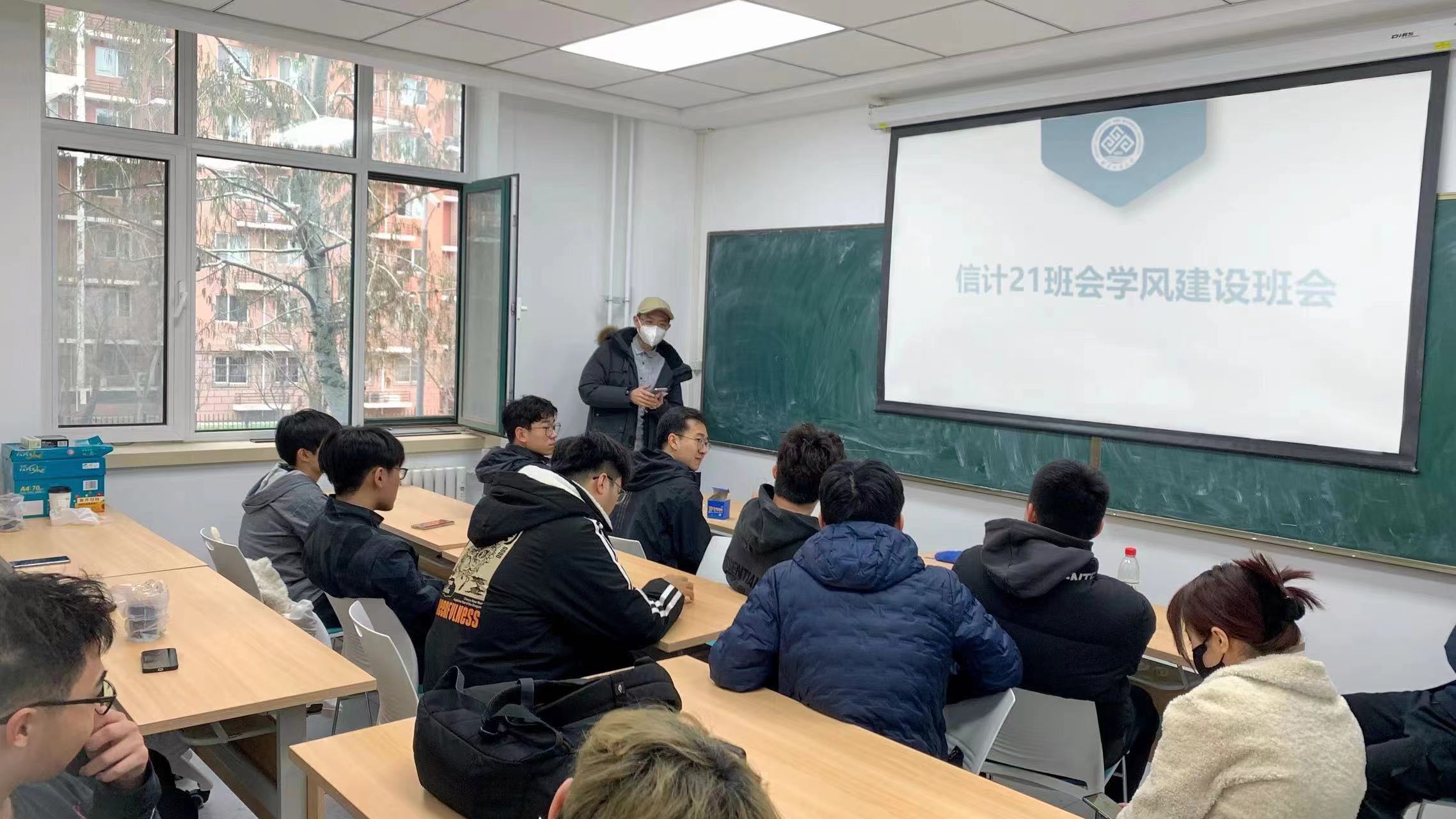 信计21班的班会由班主任李陶老师主持。李老师会前调研分析,了解了同学们准备考研、工作、出国的情况,分析了目前的成绩现状,为准备考研的同学提出建议,他希望每名员工精准发力,朝着制定的方向和目标不懈奋斗。通过本次班会,同学们更加明确自己的目标和方向。