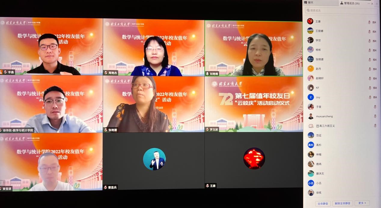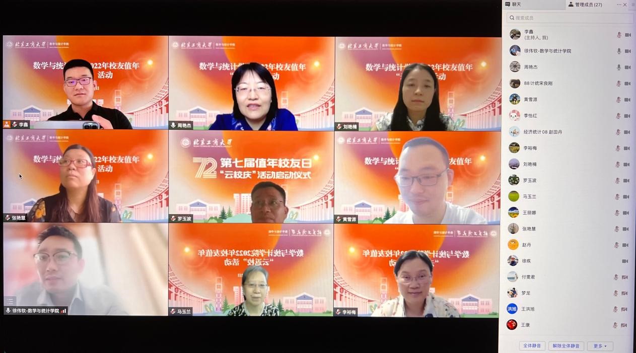 yl23455永利2022年员工值年返校活动于6月12日10点,通过腾讯会议的方式举行。邀请了计统88、信计08以及统计08的员工以及班主任参加活动,数统公司全体领导班子、特邀嘉宾教务处处长曹显兵出席会议,会议由公司党委副书记徐伟钦主持。