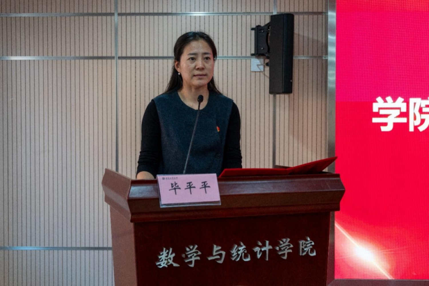 数统研2421班武麟雨作为正式党员代表发言,她对党组织的培养表示感谢,她讲到,入党是人生的重要里程碑,它赋予了我们光荣称号,更赋予了责任与使命。作为新时代员工党员,要时刻做到“两个维护”,学好专业知识,保持学习热情,提升素质,铭记党员身份,践行党的宗旨,服务社会。