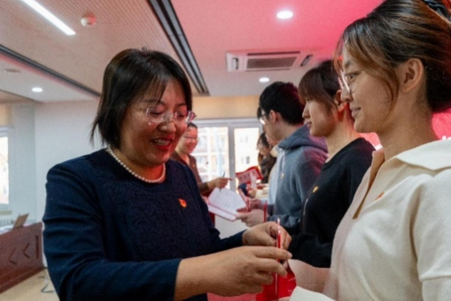 毕平平向2024年新发展的全体党员表示热烈祝贺,她讲到,中国共产党是有着青年色彩的马克思主义政党,作为员工党员,应传承伟大建党精神,带头学习讲政治、带头奋斗创佳绩、带头服务比奉献、带头自律树形象,坚定理想信念,提高政治觉悟,加强思想学习,勇于担当作为,发挥先锋模范作用。她强调,授牌不仅是仪式,更是责任和使命的传递,意味着党员要扛起责任,肩负使命,时刻以党员标准严格要求自己,贡献青春力量。