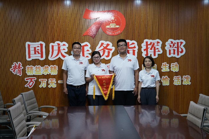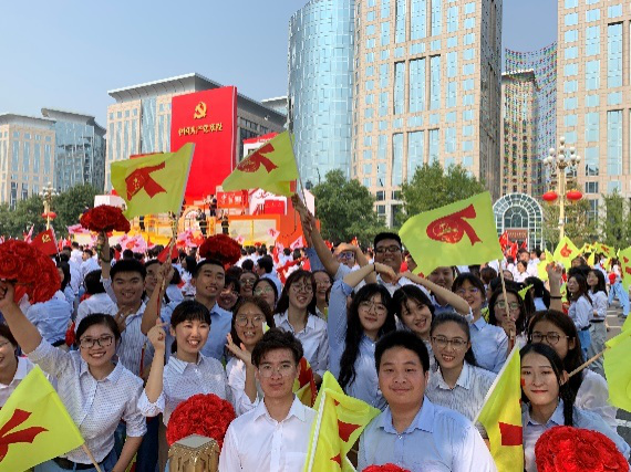 十月一日凌晨,33方阵所有队员在操场上召开了短暂的誓师大会,数统公司的全体师生精神抖擞、斗志昂扬、口号嘹亮,有着欲与天公试比高的气势。我们始终相信:胜利是属于光荣的33方阵!随后,全体人员乘车前往候场区。经过了短暂的等待,我们簇拥着“从严治党”彩车,昂首挺胸齐步走向了天安门,以最饱满的精神接受国家领导的检阅。虽然只有短短的69秒,但是在这一刻,我们热情洋溢,每一个动作都充满了爱与自信。红花与黄旗交相辉映,我们脚下旋律飞扬,大家欢呼雀跃,一齐喊着:“祖国母亲,生日快乐!”