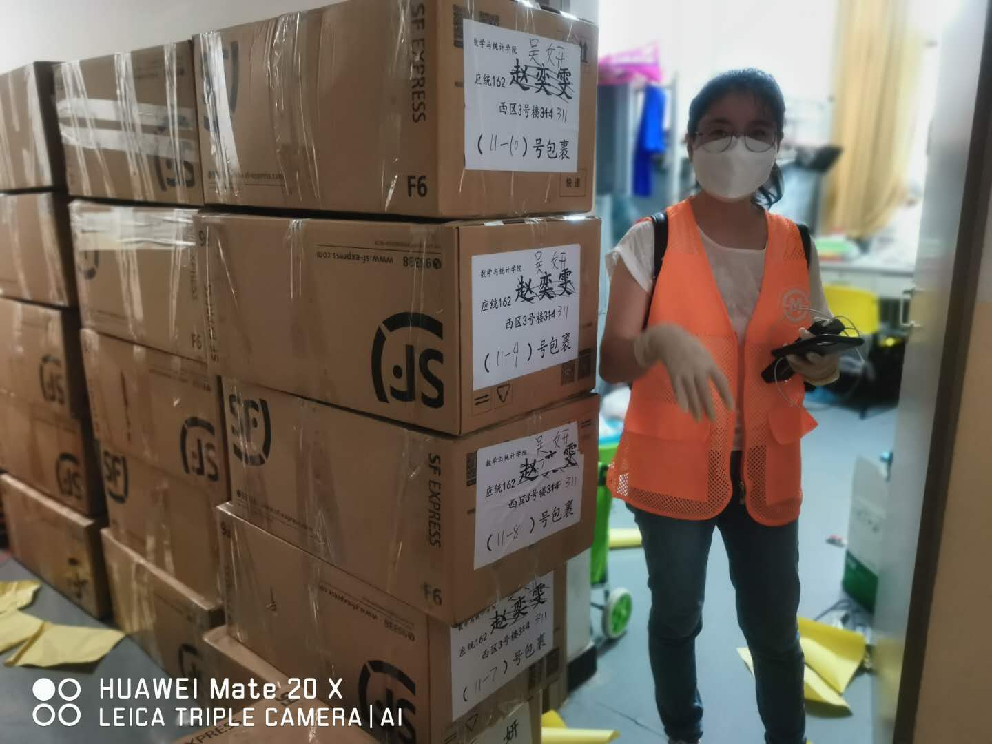 公司教职工克服中高风险地区隔离、全校数学公共课期末考试等诸多困难,主动报名、积极参与。公共数学系季语、王鑫;数学与应用数学系方飞、靖永涛、张艳慧、蔡晓静、戴睿;应用统计系莫立坡、黄雪源、孙琪、贺茜君、李凌云、傅莺莺;经济统计系辛士波、尹玉良、王康、张蕙、韦佳佳、王倩、邱雅、徐玲;刘玢、李鑫、张琦、闫慧宁等25名教职工参与毕业生行李打包邮寄工作。