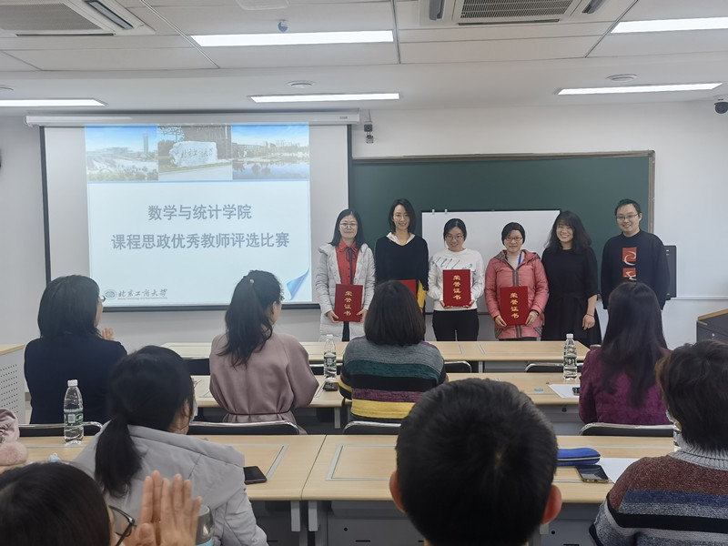 12位参赛教师分别进行了十分钟的教学展示,内容涵盖数学基础课程以及统计学相关内容,并结合新冠肺炎疫情等事实挖掘与时政相关的各项因素,引经据典,精彩纷呈。教师们结合所授专业的课程特点,将国家政策、时事政治、家国情怀、哲学方法、职业素养等思政元素自然的融入到课程中,体现了各位教师良好的政治素养与参与课程思政教学改革的踏实工作作风。