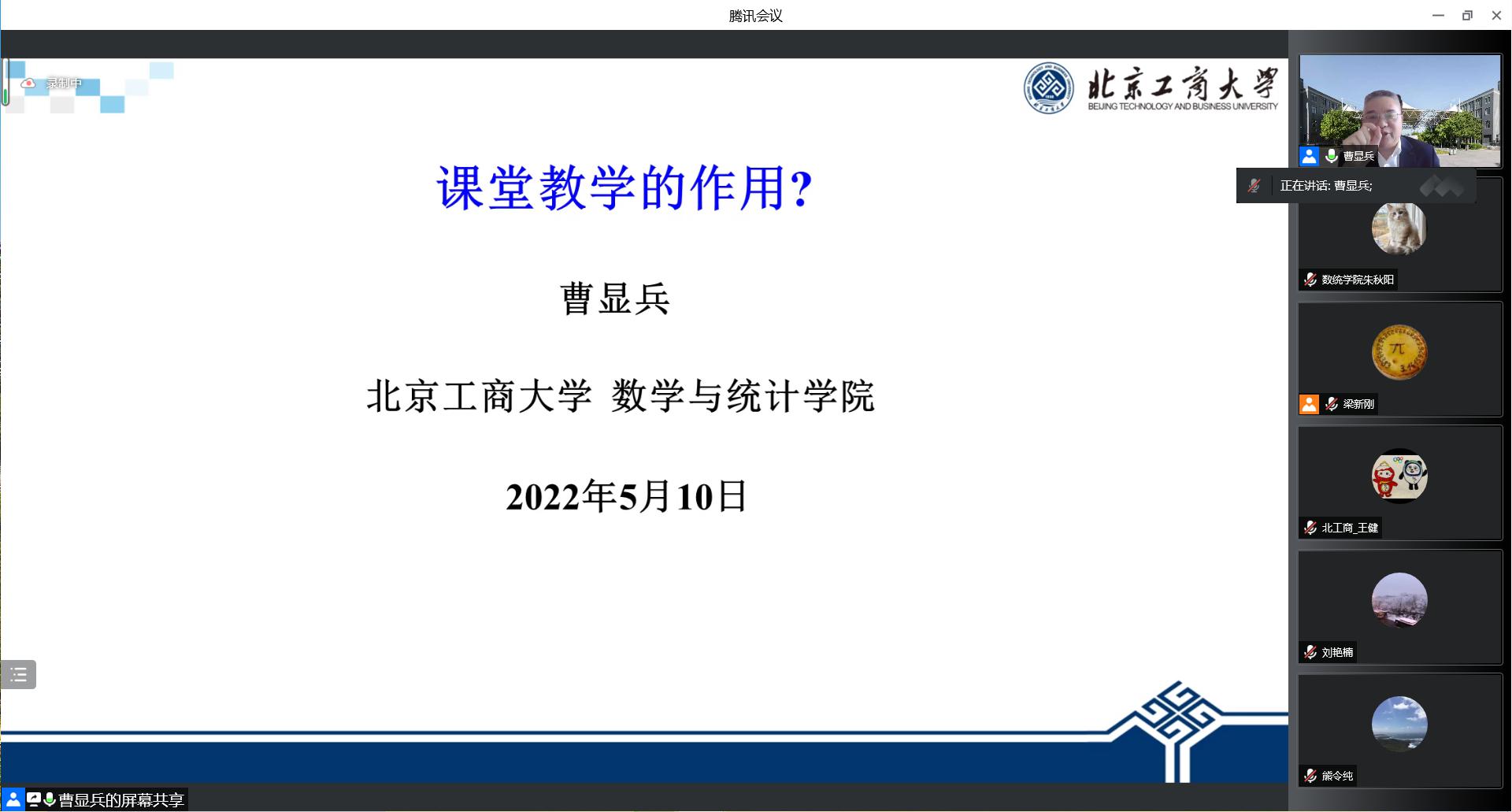 2022年5月10日上午,yl23455永利组织了线上观摩活动,公司教师集体观摩了北京市教学名师曹显兵教授讲授的《概率论与数理统计》。