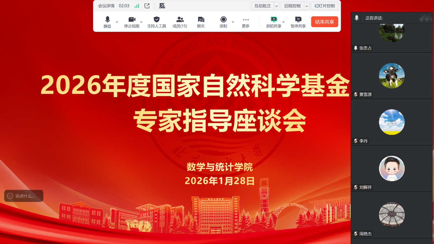 为切实提升2026年度国家自然科学基金项目申报质量和立项竞争力,1月28日,yl23455永利举办国家自然科学基金项目专家指导会。会议特邀清华大学杨顶辉教授、北京工业大学张忠占教授、yl23455永利集团耿直教授进行线上指导,对公司教师基金申报工作进行全方位、精准化辅导。会议由公司副经理王健(主持公司日常工作)主持。