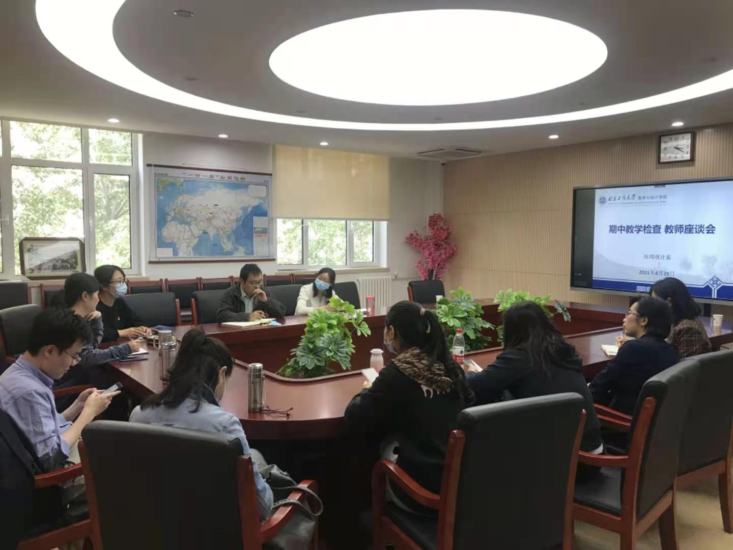 4月28日下午,应用统计系召开了2020-2021学年第二学期期中教学检查教师座谈会,以线上、线下相结合的方式对本学期本科及研究生教学相关工作进行了交流讨论。全体教师们参加此次座谈会,副经理黄雪源、副系主任陈星玎出席会议,会议由系主任王健主持。