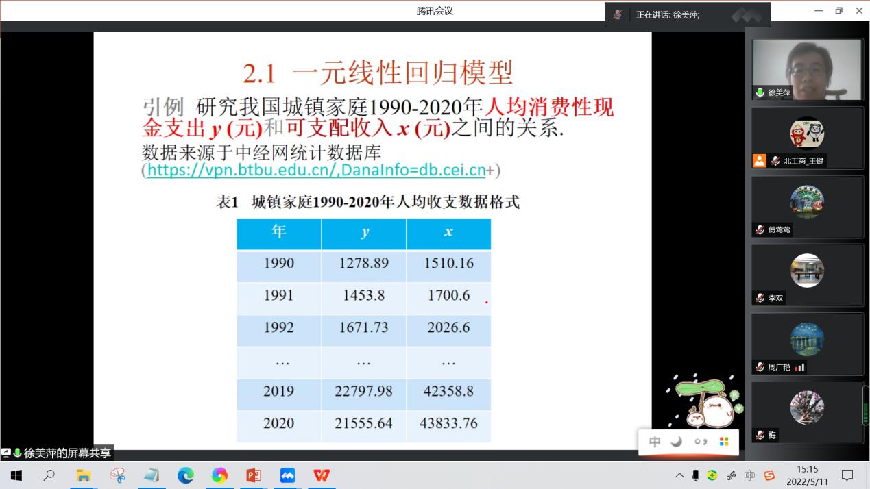 5月11日下午,统计大数据课程组开展第二次教学研讨活动。课程组教师参与了徐美萍老师关于“一元回归分析中最小二乘法的教学与实践”以及周广艳老师关于“《泊松过程》的教学准备与讲授”的教学分享和研讨活动。