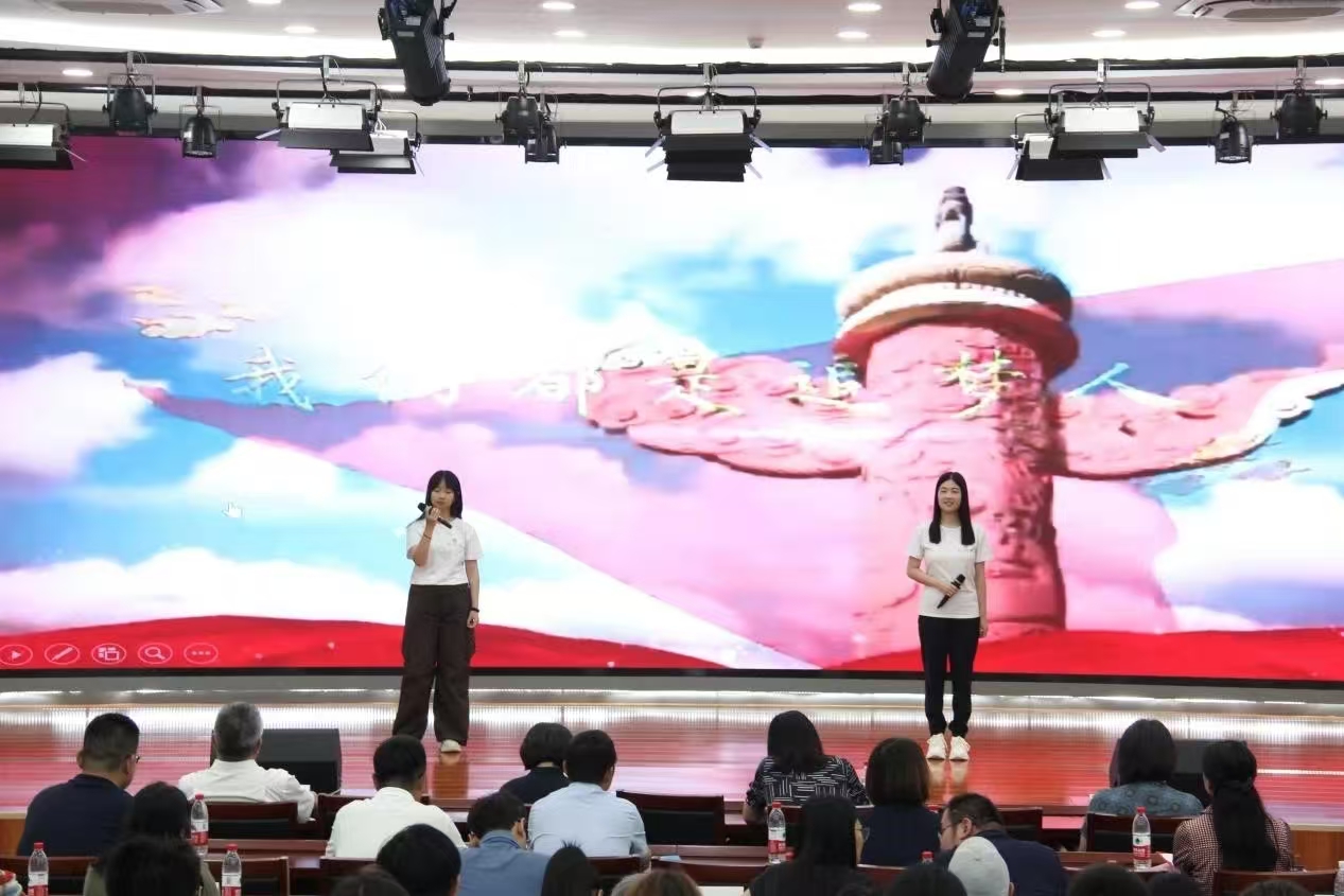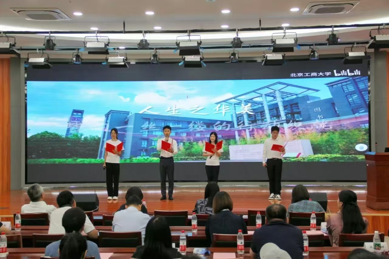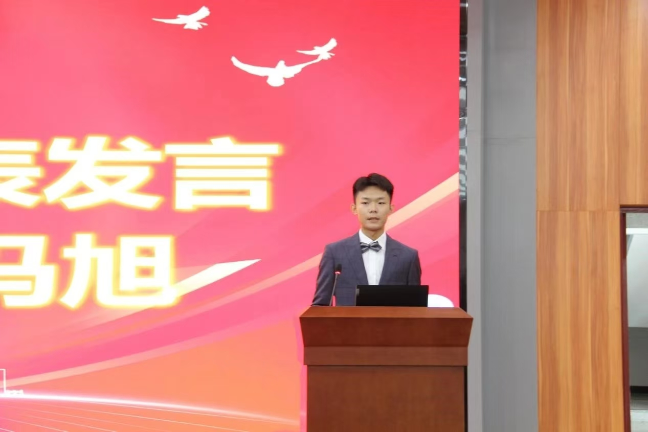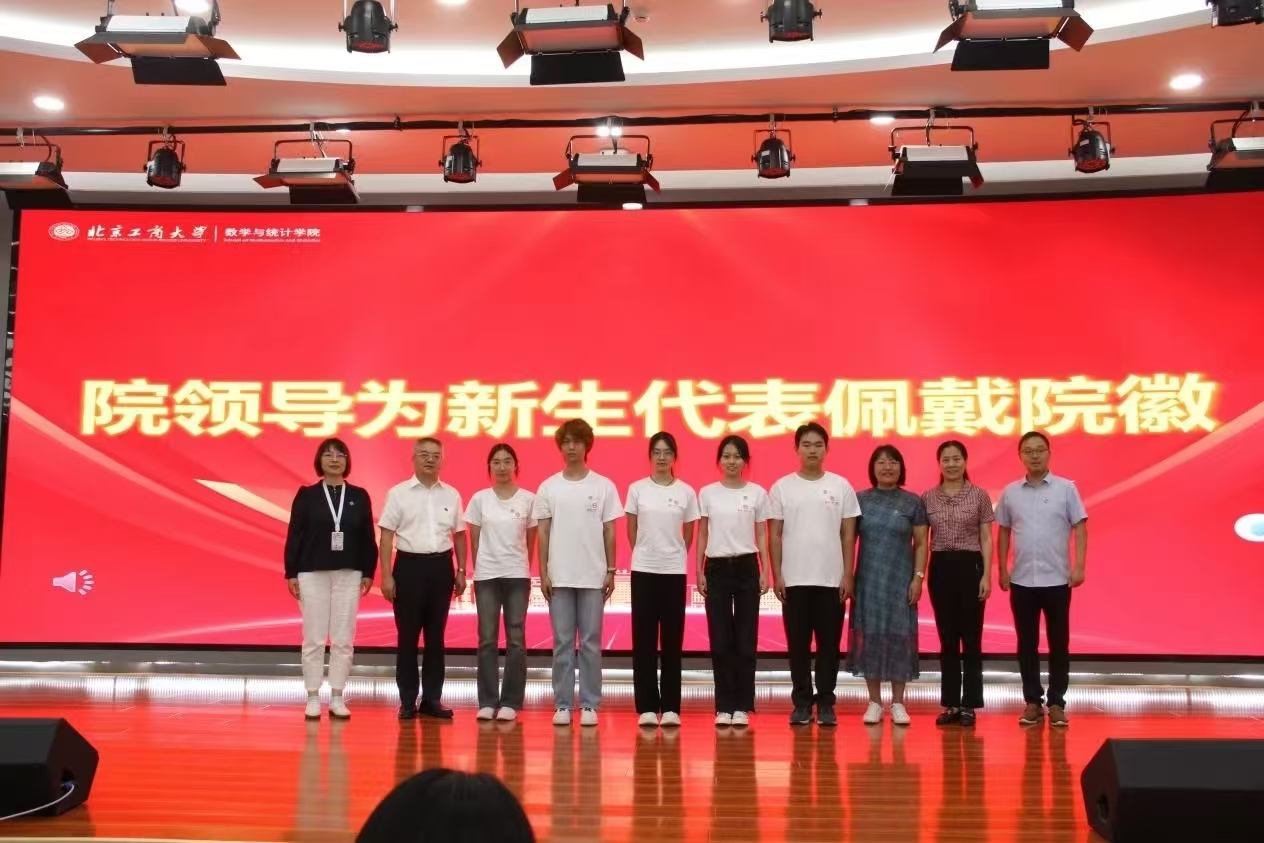 应统24(中外)张清桠、经统24陶昭涵、经统24冯旭和应统24薛仕磊作为新生代表,用饱满的热情诵读出对北工商的热爱和对未来的展望:从现在开始,在数学的海洋里,我们勇敢启航,用智慧作桨,以勤奋为帆,向着未知的远方,无畏前行。愿青春不负韶华!