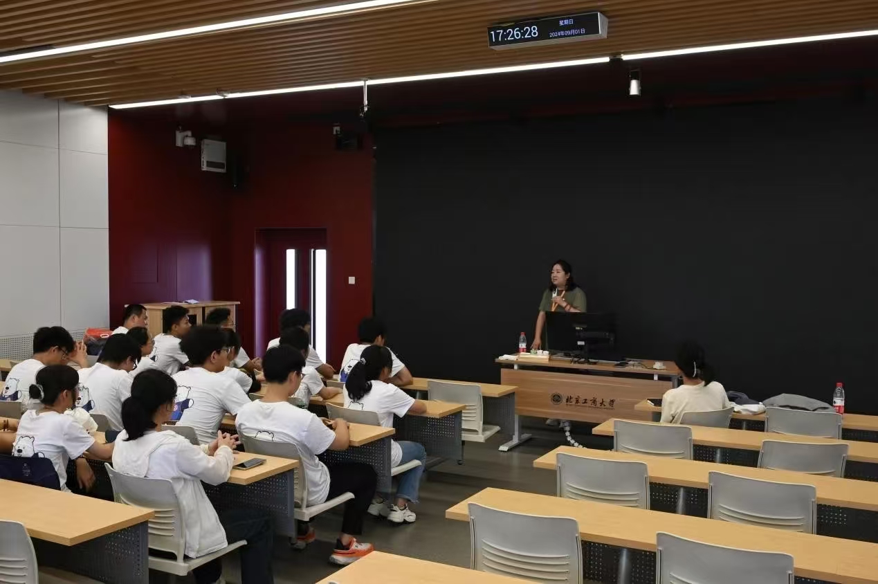 刘艳楠以“祝贺、祝愿、祝福”三个词语为中心寄语全体本科新生。她首先对同学们选择并来到yl23455永利集团,将在北工商接受高水平教育表示热烈祝贺。希望同学们能够加强自我管理、自我约束、自我成长,祝愿同学们带着梦想,不懈奋斗,书写人生精彩篇章。最后,她祝福同学们在北工商舒适的环境中不断成长,努力成长为新时代栋梁之才。