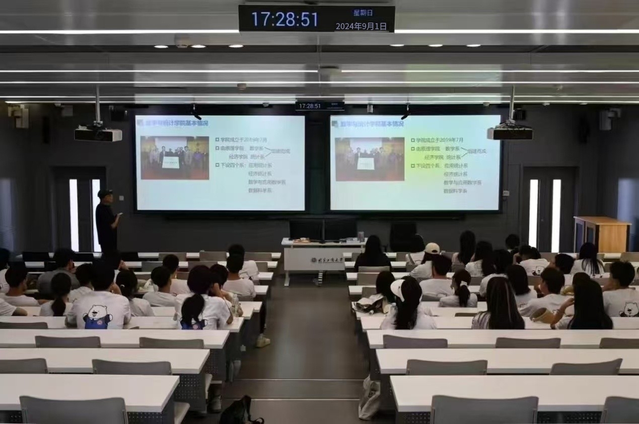 开学典礼结束后,数学类、经济统计学和应用统计学(中外)专业分别在求真学堂和文二楼召开新生班主任见面暨专业介绍会,向新生详细讲解专业特色和学习方法,相关专业新生和家长代表参加。