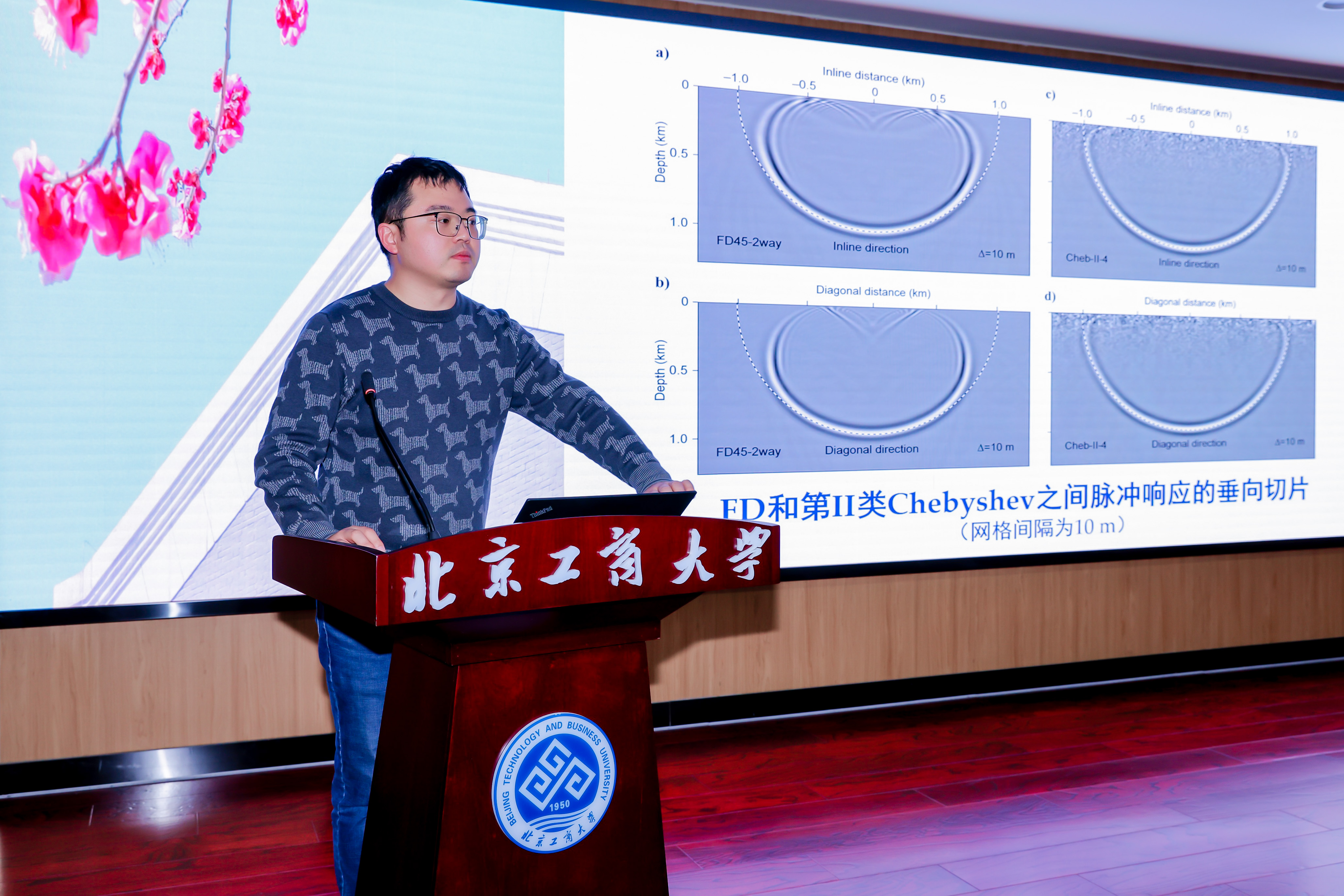 十六位报告主讲人分享了各自最新的科研成果,介绍了计算地球物理学相关方法与应用研究前沿的最新进展。国家杰青、来自中国科公司大学的张怀教授介绍了雅丹演化建模相关理论与数值算法;海外优青、清华大学邱凌云研究员介绍了一种稳健的提高全波形反演精度的方法:source wavelet manipulation;西南石油大学经理宋国杰教授介绍了衰减TI介质中解耦近似的qP波和qSV波方程及数值算法;来自中国科公司地质与地球物理研究所的潘文勇副研究员介绍了一种基于中心频率目标函数的伴随衰减层析成像方法;来自电子科技大学的方志龙教授介绍了一种基于模型提升和波场重构的全波形反演方法;来自中国矿业大学(北京)的李静爽副教授介绍了基于粘声波方程的数值模拟和成像研究工作;来自yl23455永利集团的贺茜君副教授介绍了利用间断有限元方法求解界面波传播问题的相关研究工作;来自清华大学的黄建东博士后介绍了三维间断有限元固-液耦合介质P/S波解耦数值模拟工作;中组部高层次青年人才、应急管理部国家自然灾害防治研究院的刘少林研究员介绍了缅甸、安达曼与苏门答腊俯冲带地震成像研究工作;来自中国地球物理研究所的张风雪研究员介绍了地震体波走时数据的智能化处理工作;来自中国地震局地质研究所的董兴朋副研究员介绍了青藏高原东缘多尺度全波形成像研究工作;来自中国地球物理研究所的张瑞青研究员介绍了接收函数方法及其应用的研究工作;来自西北工业大学的马啸副教授介绍了非规则区域中的程函方程的正演及地震位方法;来自应急管理部国家自然灾害防治研究院的宋汉杰助理研究员介绍了基于第П类Chebyshev多项式改进单程波动方程的傅里叶外推算子;来自北京信息科技大学的郎超副教授介绍了基于深度学习的频率域波场模拟预条件BiCGSTAB迭代方法;来自清华大学的刘梦雪博士后介绍了大陆碰撞造山带横向非均一演化的动力学数值模拟研究工作。报告精彩纷呈,拓展了与会师生的学术视野,引发了热烈深入的探讨。