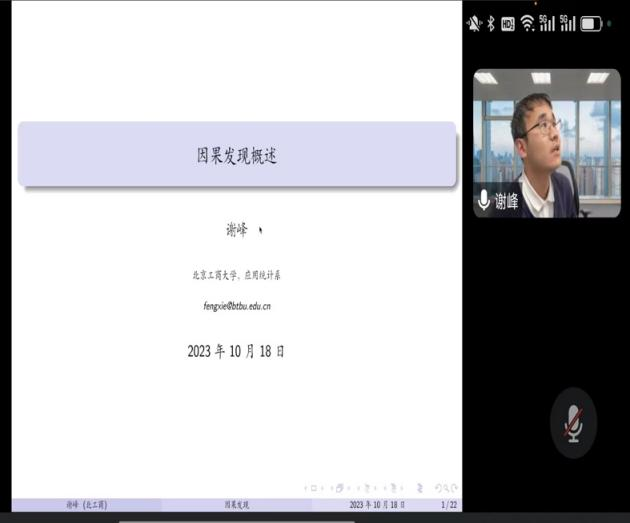 本学期应用统计系学术沙龙活动的第二场报告于10月18日举行,谢峰副教授作题为“因果发现概述”的学术报告,本场报告由应用统计系副主任陈星玎教授主持。